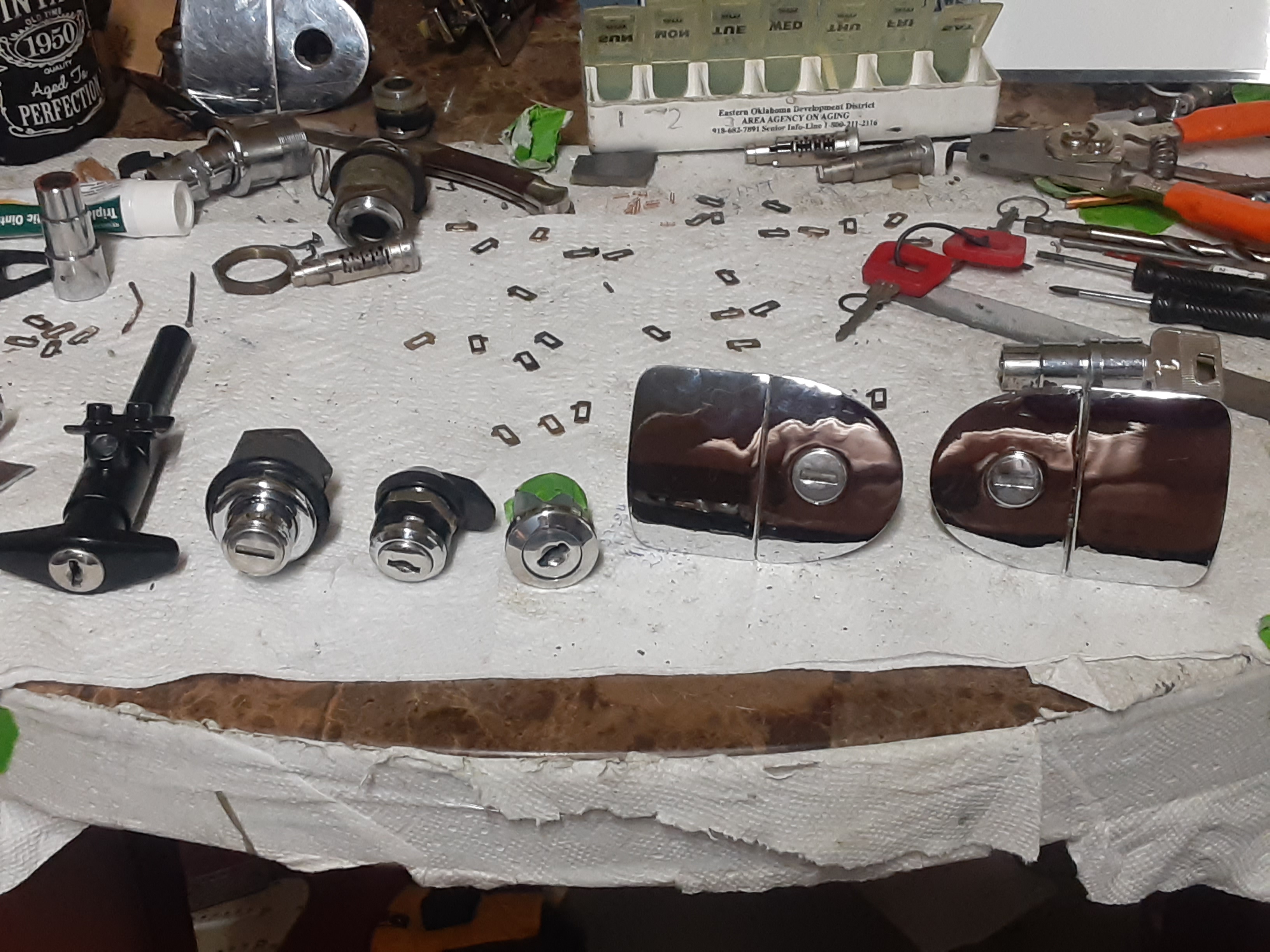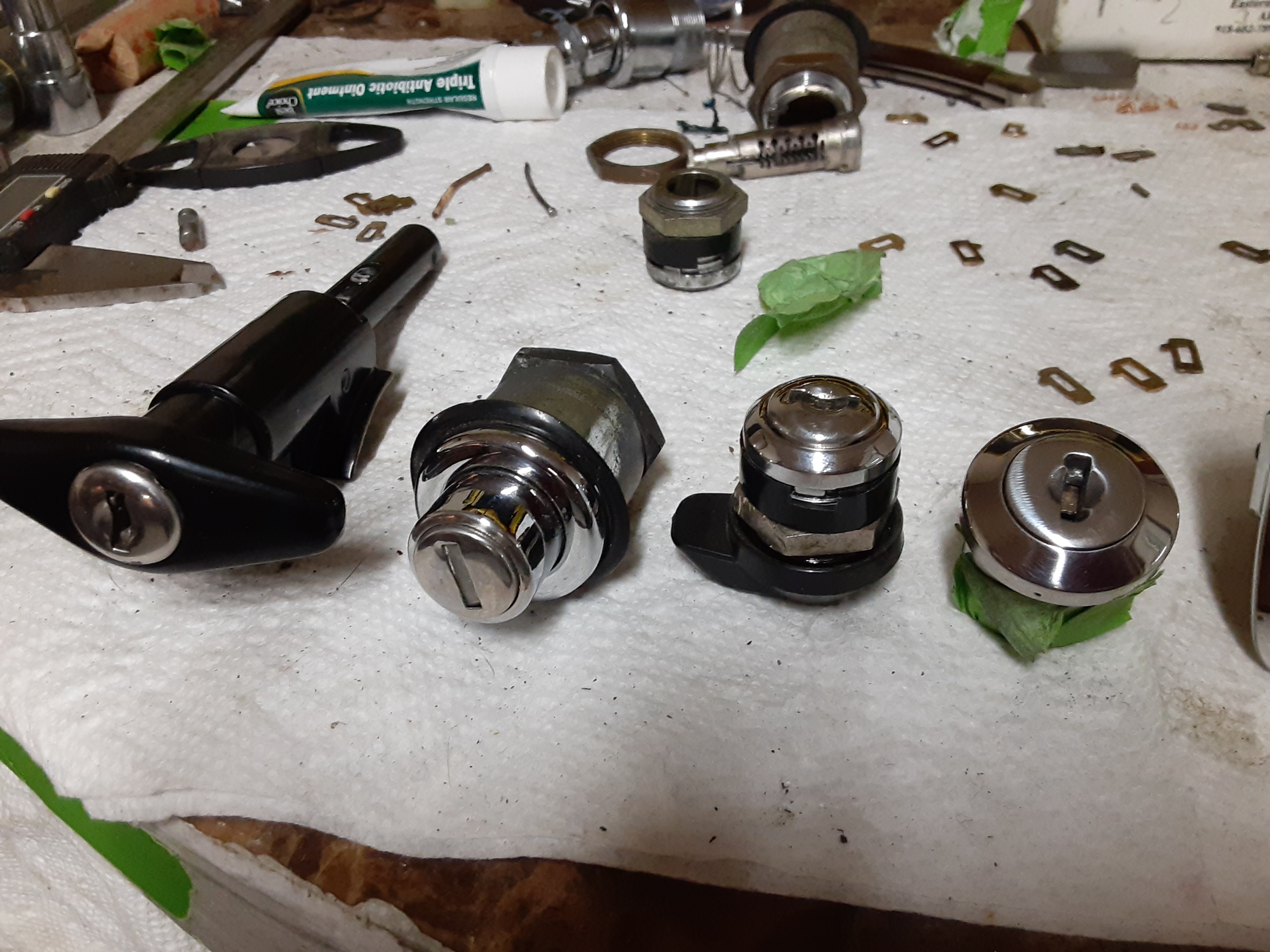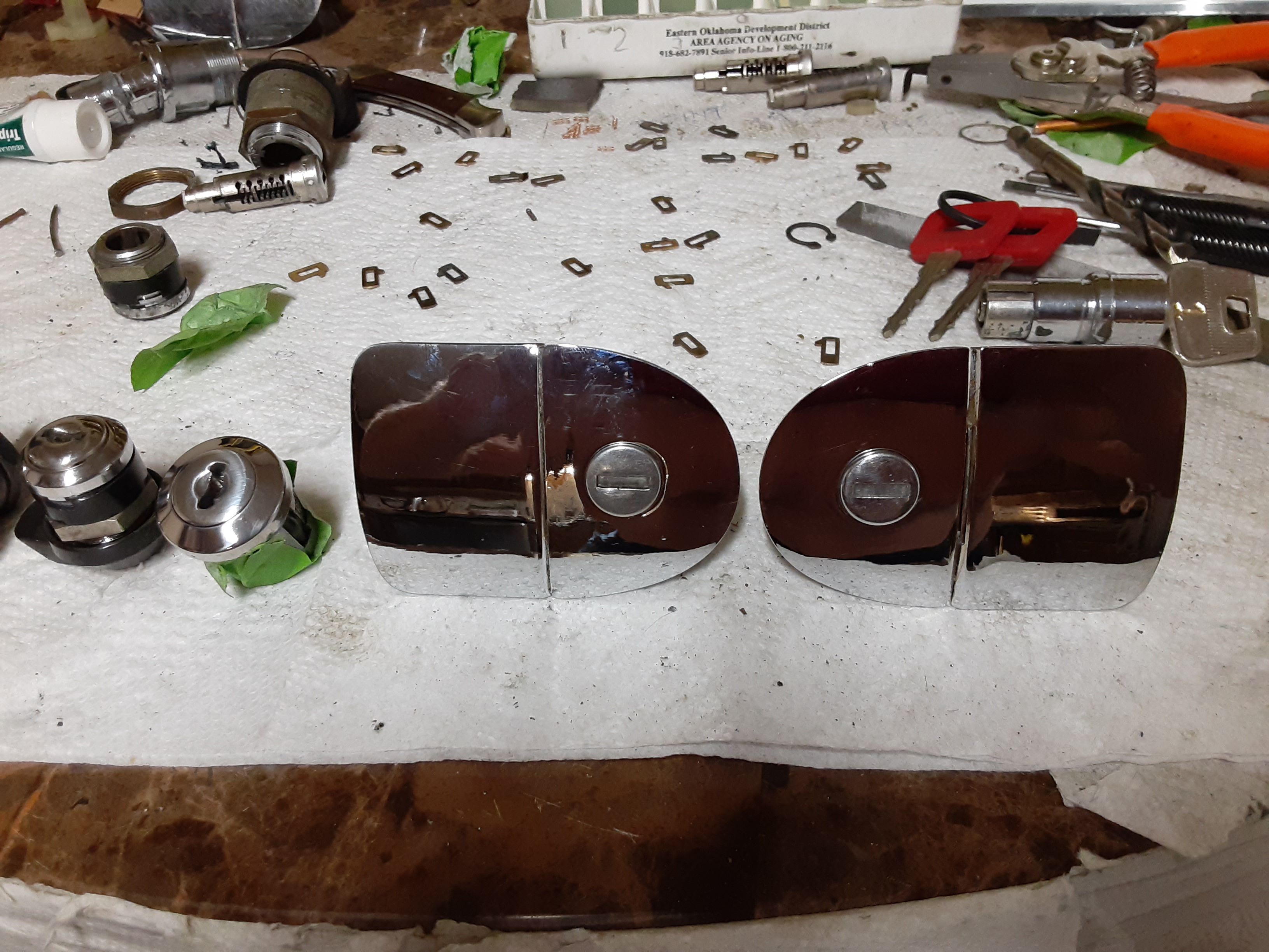 This is a completely rebuilt set. Each lock has been dismantled and ultrasonically cleaned. Each cylinder has new springs, and each wafer has been inspected and is the proper size. Worn out wafers are discarded. Christmas sale price is $450.00, plus$100.00 core charge. Core charge will be refunded upon receival of your old locks and handles. Cores must be rebuildable. Oem cut keys are $45.00 each. Please pm for more info. |