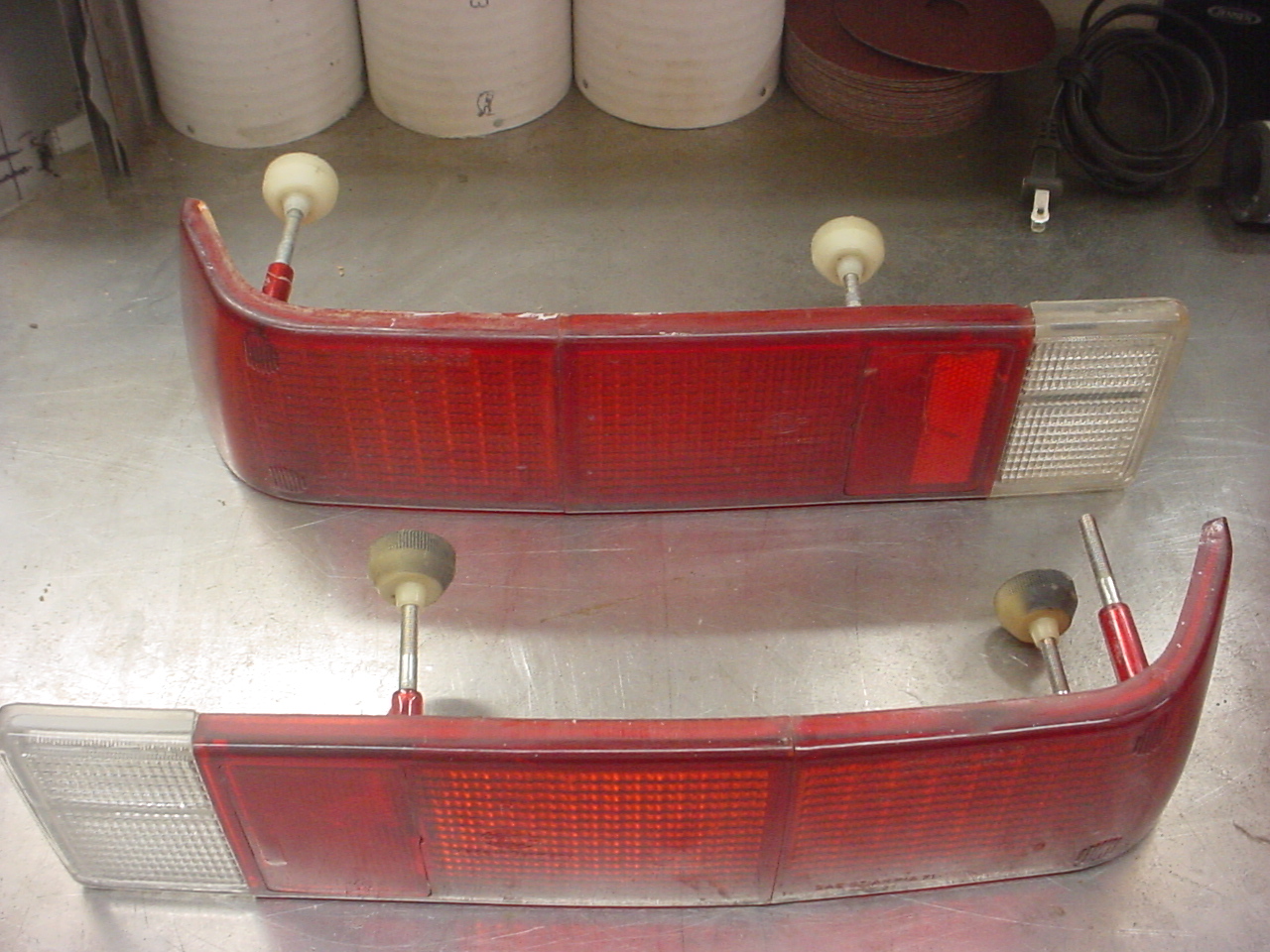 fuel injection harness $250 Used, but in very nice shape. I got new rubber boots for it. I just never got around to installing it. tail light lens set $175 Used, but still in nice shape. I bought these as spares. rear lid "ears" $10 If yours are cracked, these are new. The orange is primer; they came to me that way. I added airshocks to my rear lid so I didn't need these. sail panel trim for rear (left and right) $30 for both Decent shape. I've photographed the rough parts. These were spares I picked up. PM for the sail Panel Trim |