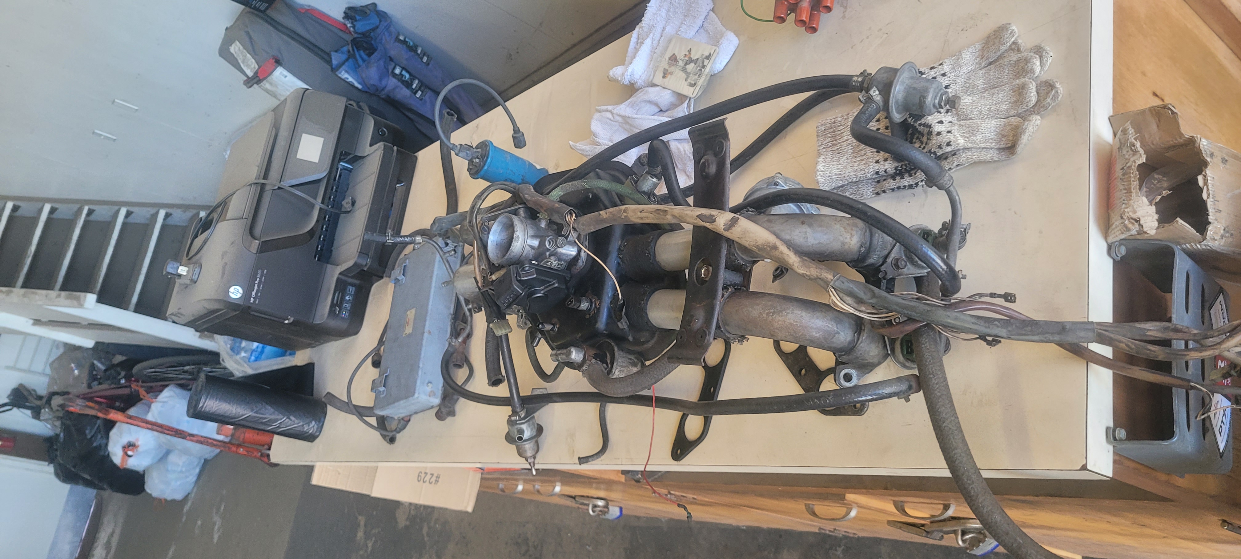 Also that is the wrong FI for your car. Your 1976 car should have a L jet instead of that D jet. Personally I prefer the L jet anyhow since it is quite a bit more mechanically robust in terms of all the connectors and wiring. I think the manifolds will have holes for three studs buy your heads will have four.