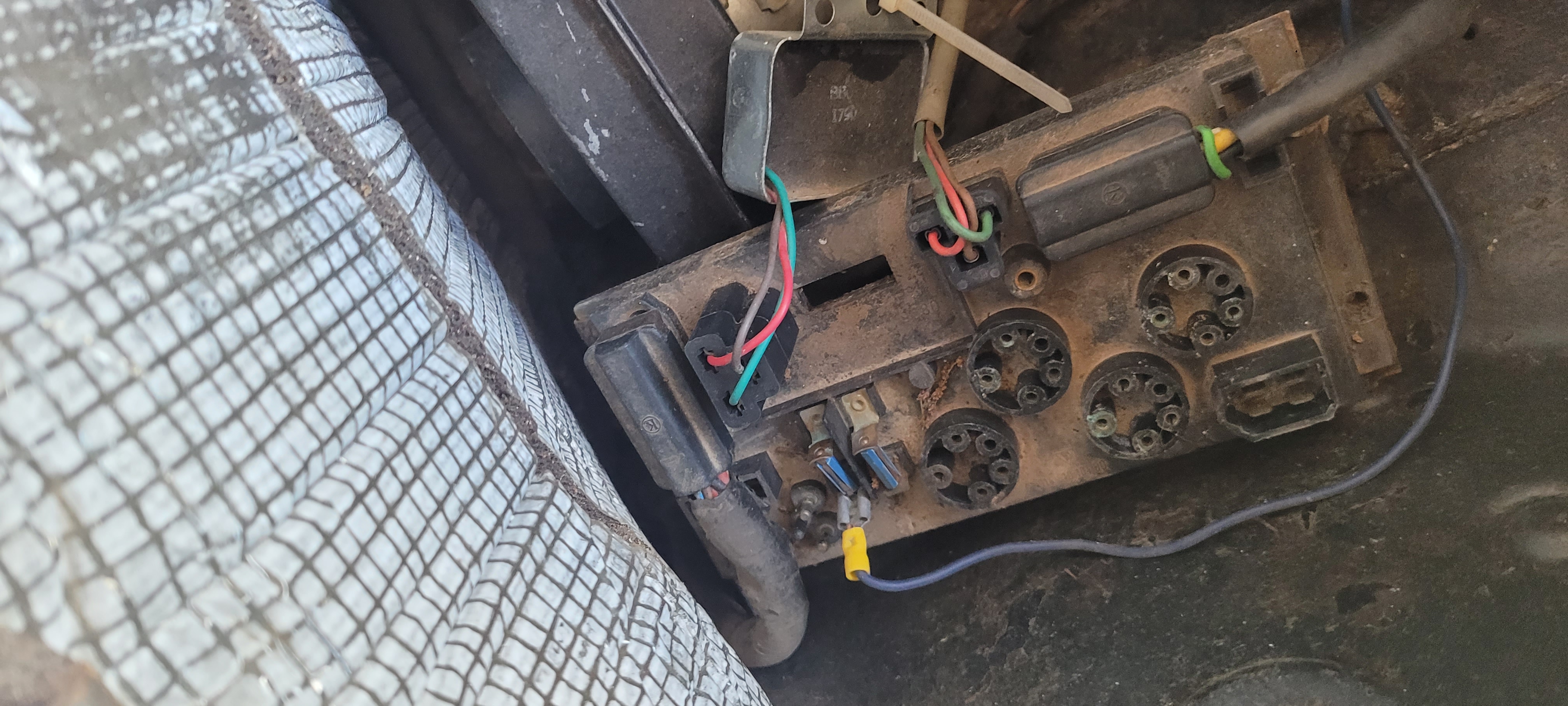 Single brown ground cable for the fuel pump is separate from the chassis harness. Look for a male 6mm lug welded to the chassis to attach it.