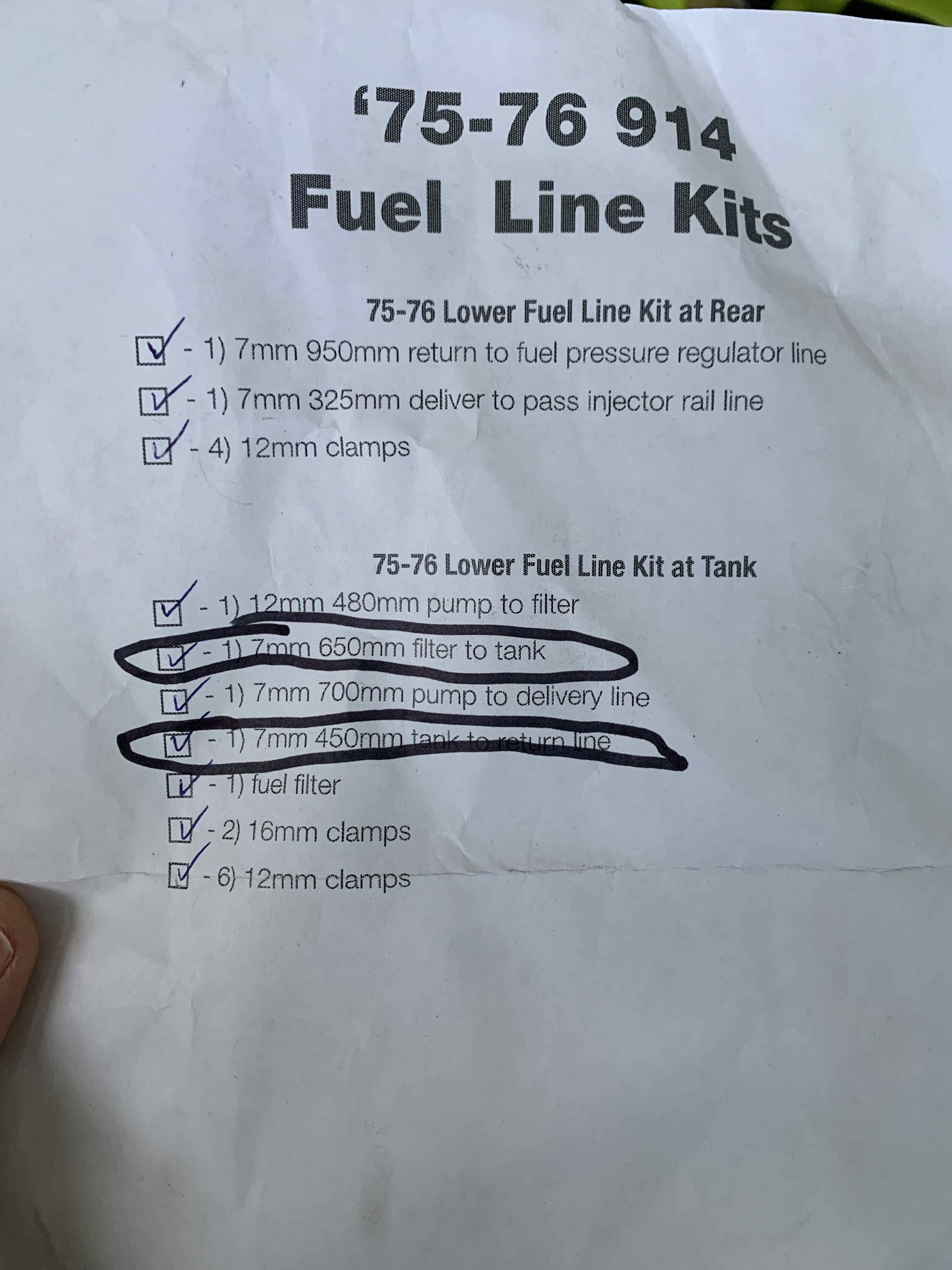 .. (like the '75 and '76). First question: regarding the send and return pipes on the bottom of the tank - the send line measures at 10 mm and the return at 8 mm, yet the list in the AA fuel line kit lists both lines as 7 mm. .. This is because the 75-76 cars had both pipes as 8mm, and correspond with filter pn133.133.511 (8mm in, 12mm out). Assuming that's the filter you have - your best bet is to change the big pipe to an 8mm pipe (which maybe should have been included in the kit) .. (edited^^ after further considerations) |