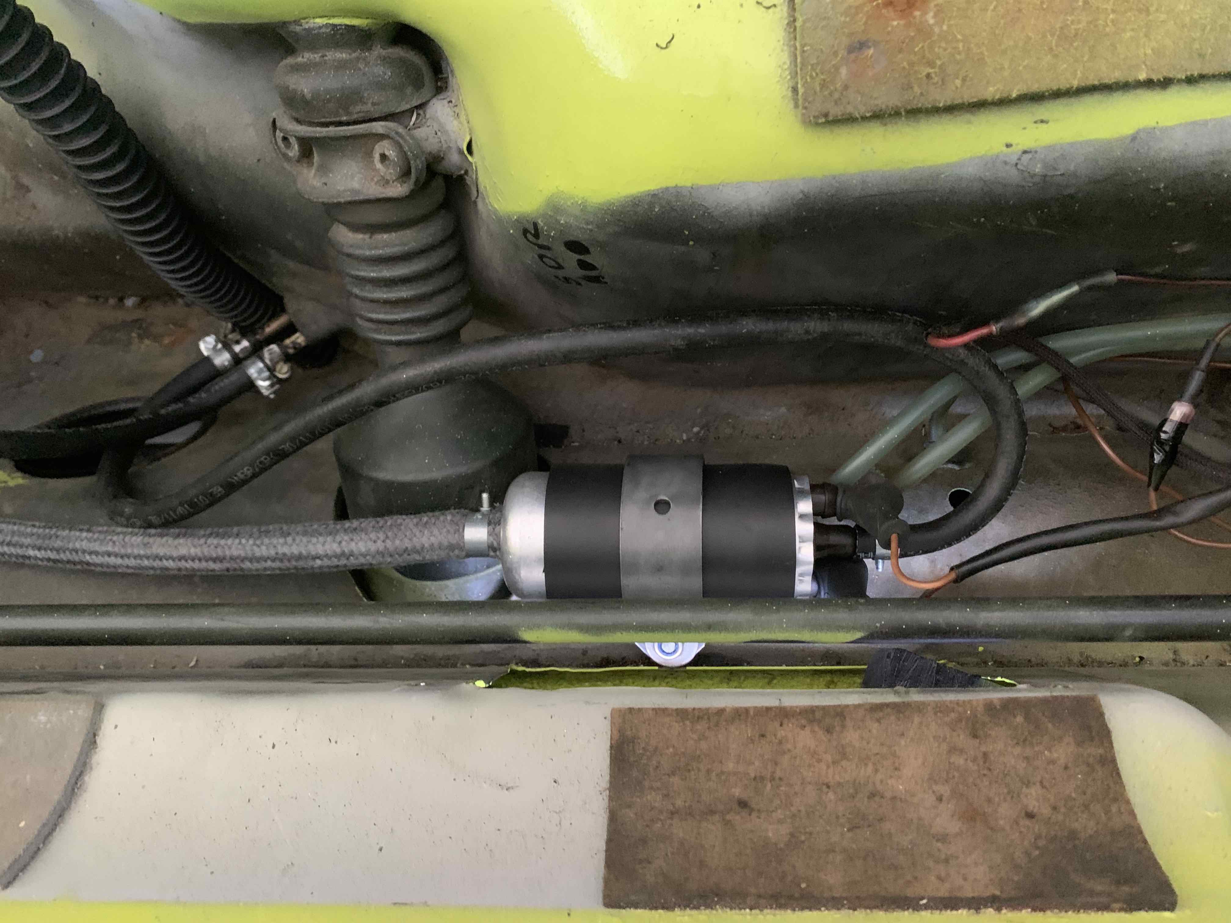 I've got a 75 with the front mount pump stock. Both tank nipples are 8mm. The pressure side goes to the filter then the pump, so the 3/8" hose fits in between. There is a filter hanger on the firewall (pedal side) across from the pump. In that pic you have the pump facing backwards from stock. Interesting. I sounds like the 75 and 76 had 8mm pipes on bottom of tank then. Hence why AA’s kit calls for a 7mm line on both. The old pump that I removed was positioned the way you mentioned but it seemed fit better this way (less stress on the wiring and lines). I assuming that as long as I have the right lines going into each end of the pump it should not matter). But if I’m overlooking something someone please let me know. |