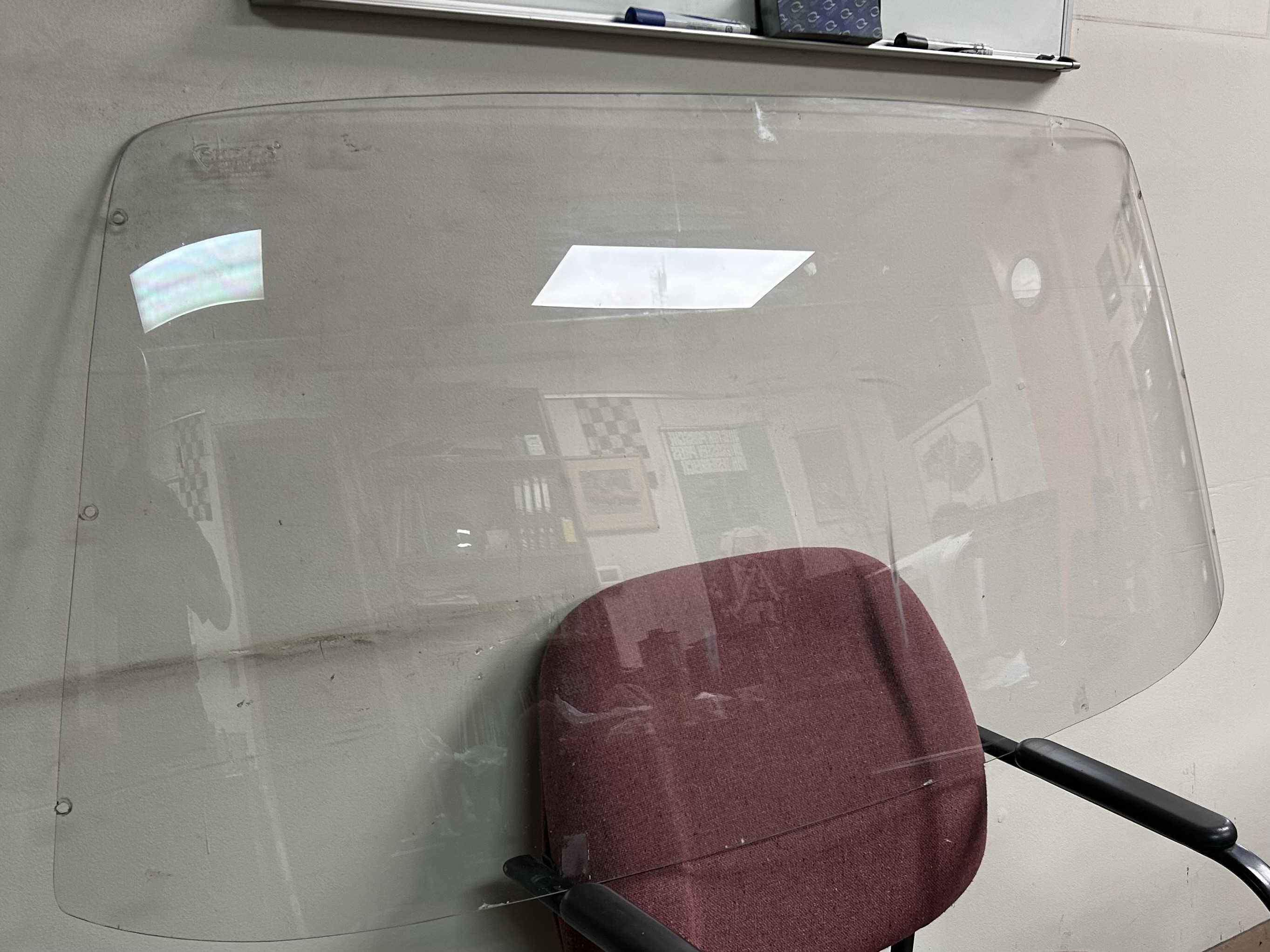 Very good condition Lexan 914 windshield. Includes aluminum retaining clips and inner supports as required by SCCA. 3 screw holes along both ends added to hold them down snugly.