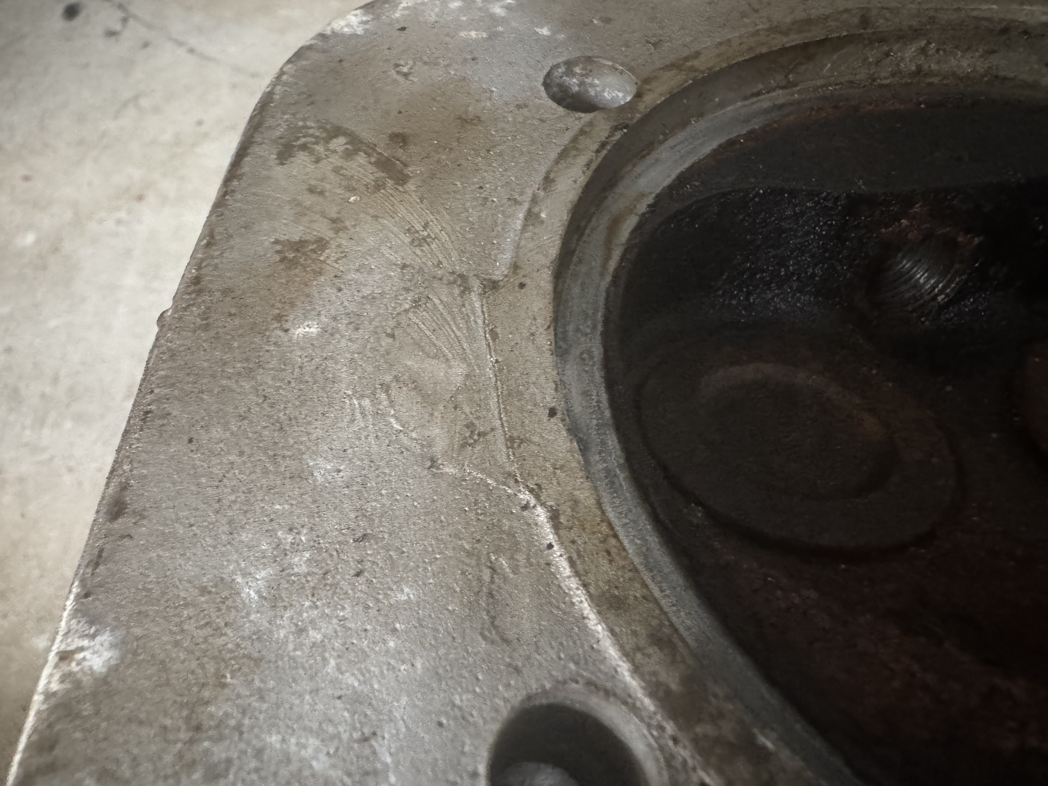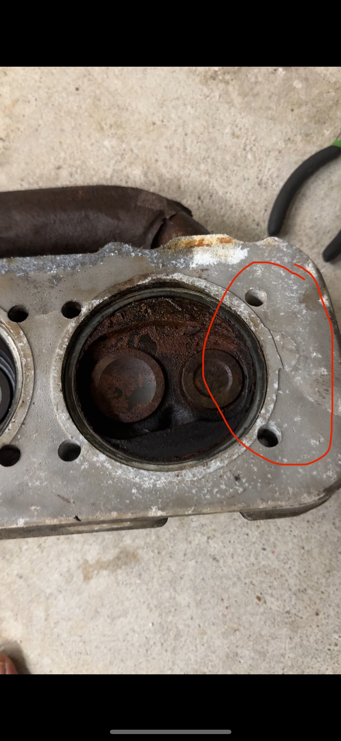 I see a casting flaw that is well outside of the combustion chamber but the sealing ring is distorted and likely leaking compression.