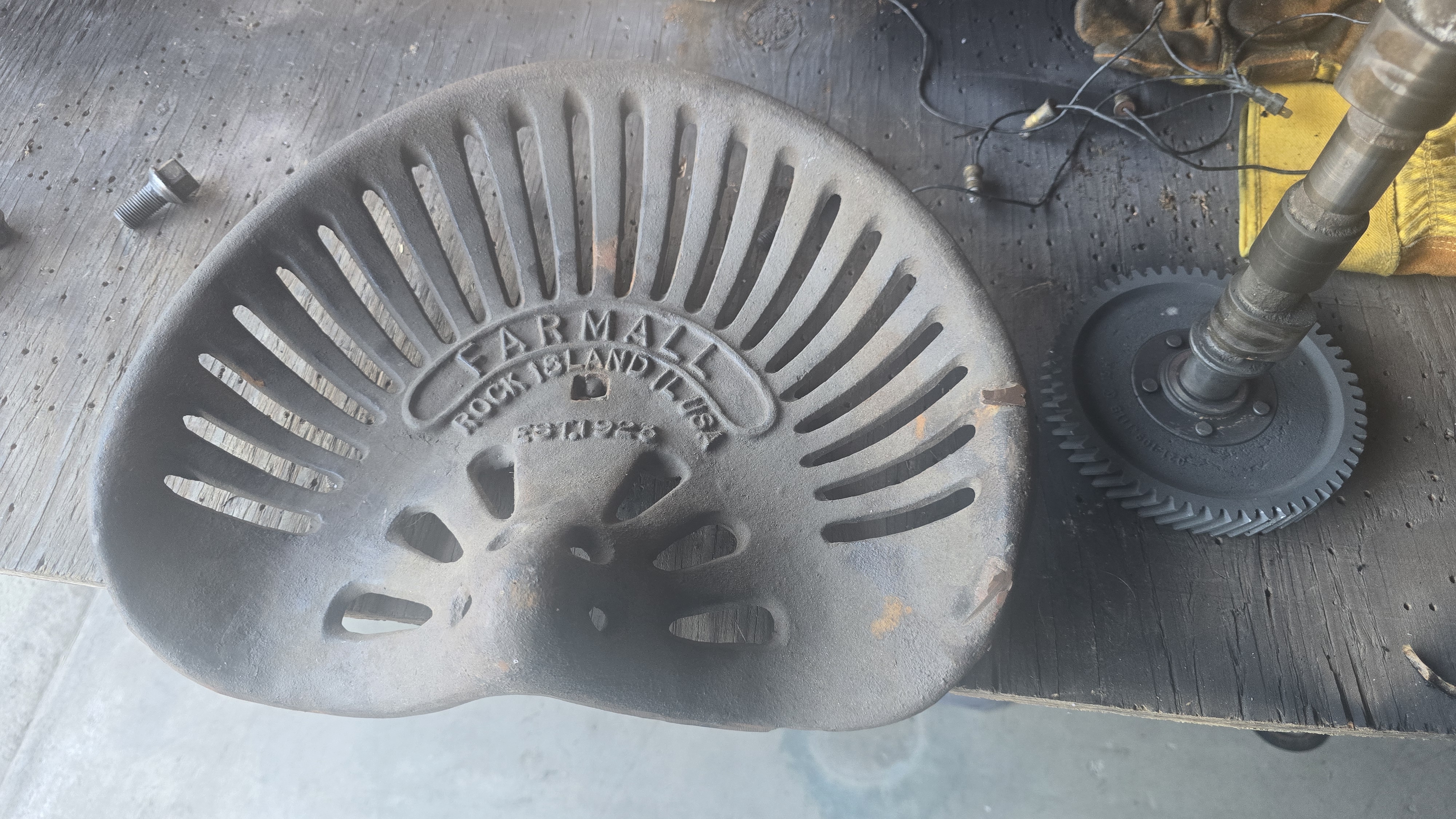 I bought this cool tractor seat at an auction for $5. Going to make it into a shop stool