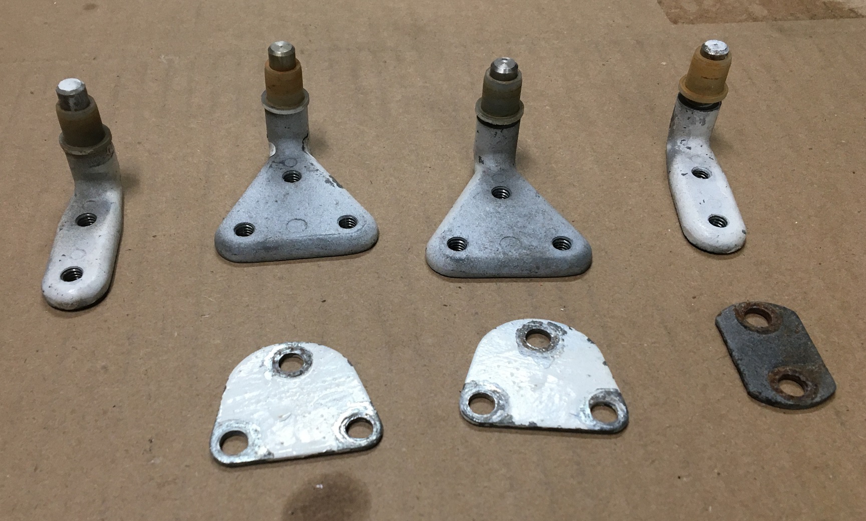 Looking for a set of the 3-hole inside pivot brackets (frunk side) for the headlights as well as a set of the L-shaped pivot brackets that mount thru to the wheel well side (hopefully with those elongated double hole washers and/or nylon bushings if you've got 'em). Shipping to 75233.