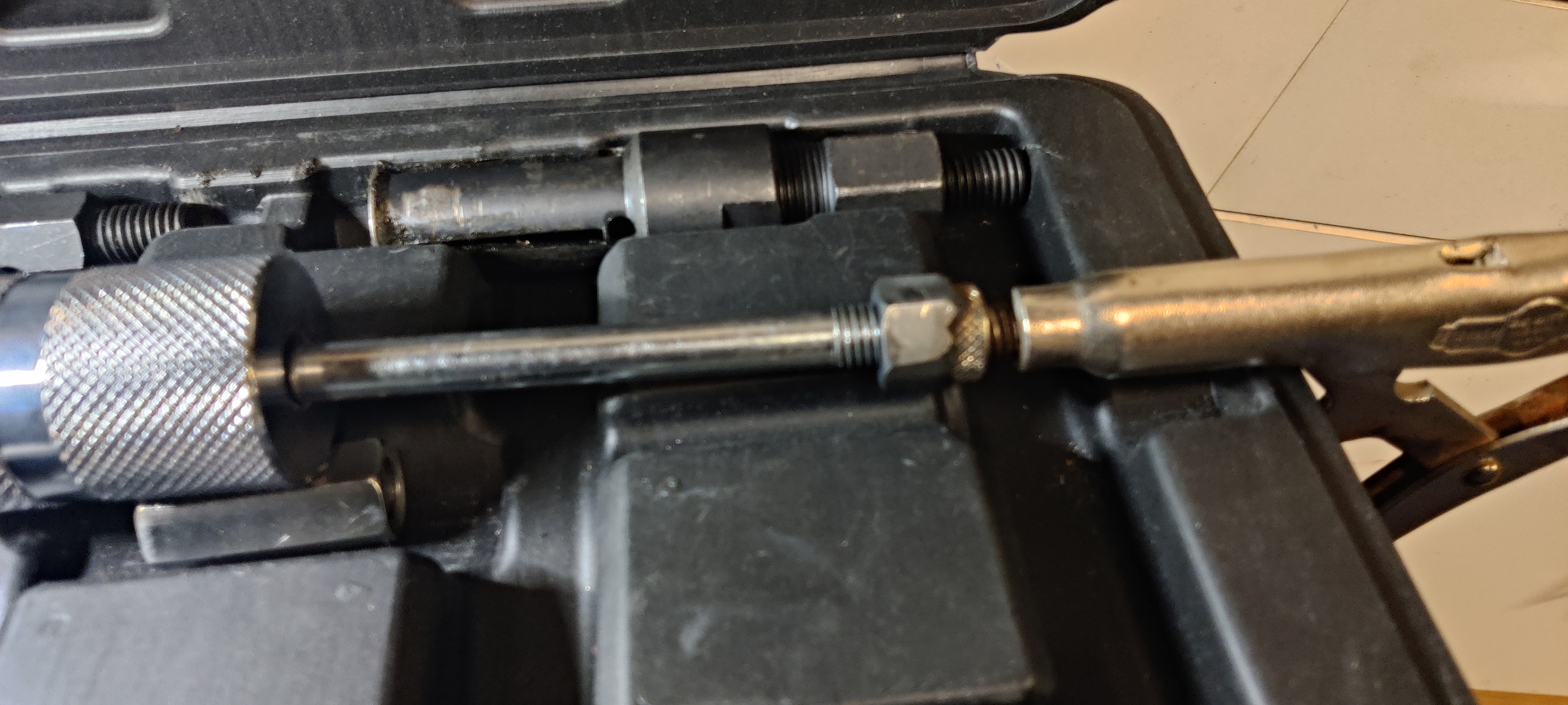 Thanks for sharing and Happy Thanksgiving to you (and everyone)! That's a cool idea and thoughtful to help out about the next guy by making it easier to open the bleeder valve without corrosion causing problems. (IMG:style_emoticons/default/biggrin.gif) To return the favor, here's a tool that can help you use a slide hammer to pull things out. When you need to do so. And still works like a regular vice grips and with the nut on there, you can use a 13mm wrench to tighten it down for a good grip. Attached thumbnail(s) |