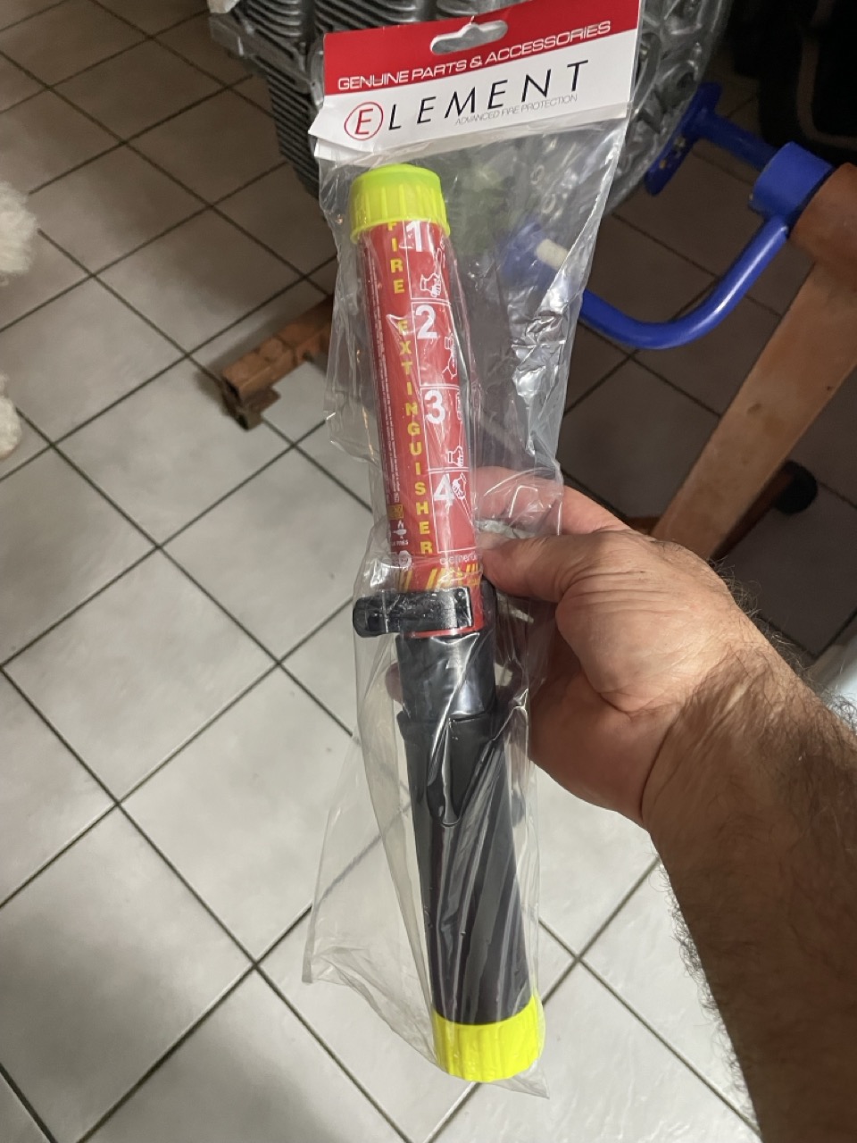 When your car's on fire, you want something that works (especially if it's in your garage, which could burn down the house and all our other cars in it). Saw the element extinguisher videos and was convinced they had issues. And, while the ones that shoot a dry chemical do work, they leave an awful mess to clean up. Had to cleanup after two dry chemical extinguishers and it took hours. And that wasn't the fire repair, just the baking soda gets into everything. Get Halon ones, you'll be happier. |