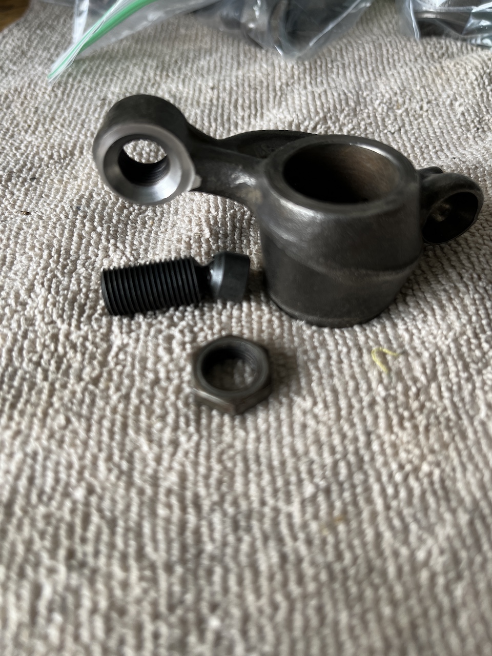 4 intake, 4 exhaust rocker arms machined and 8 Thorson tool steel swivel rockers. Locking nut are junk, there to keep swivels in place. 8 end blocks.