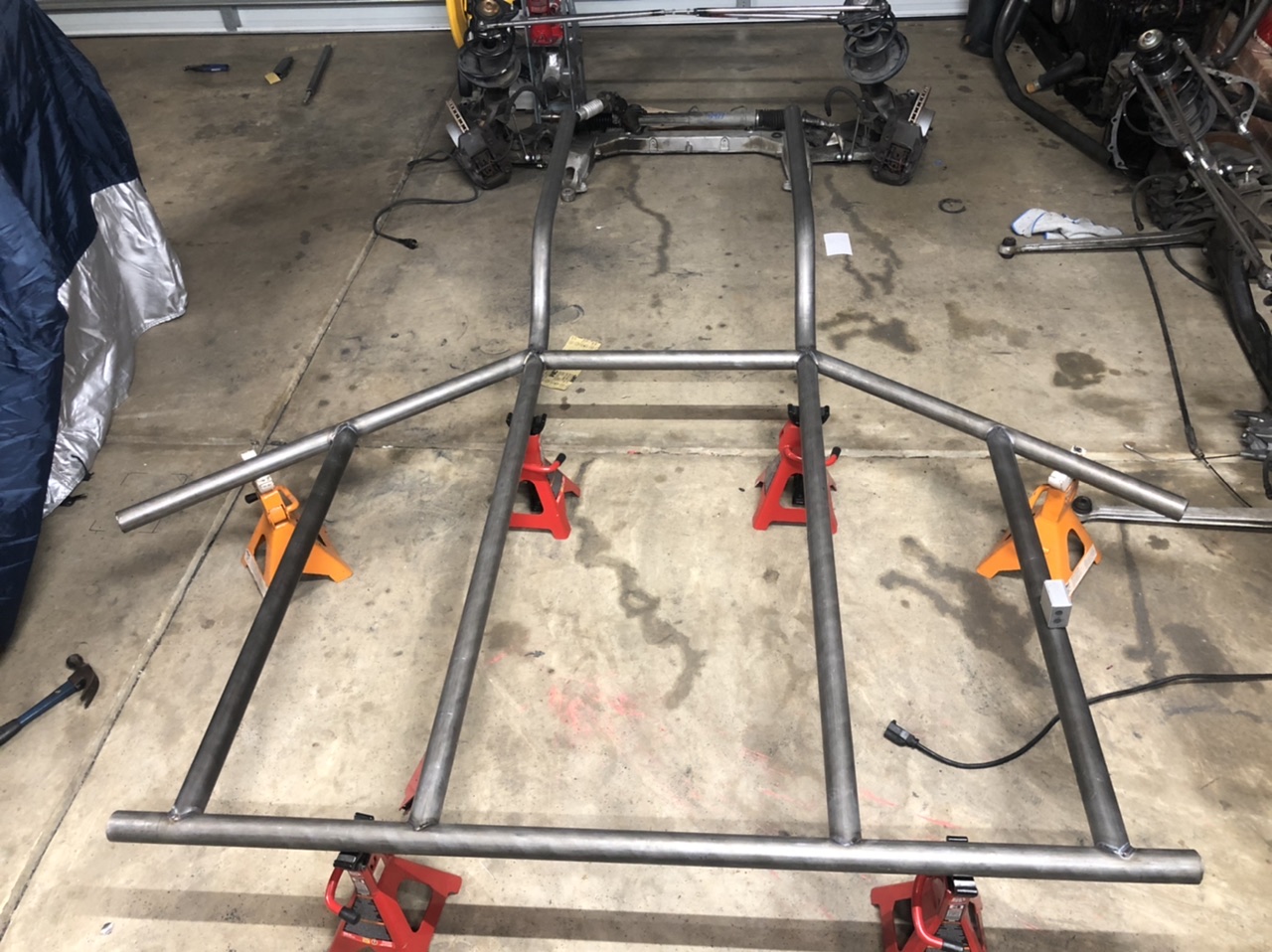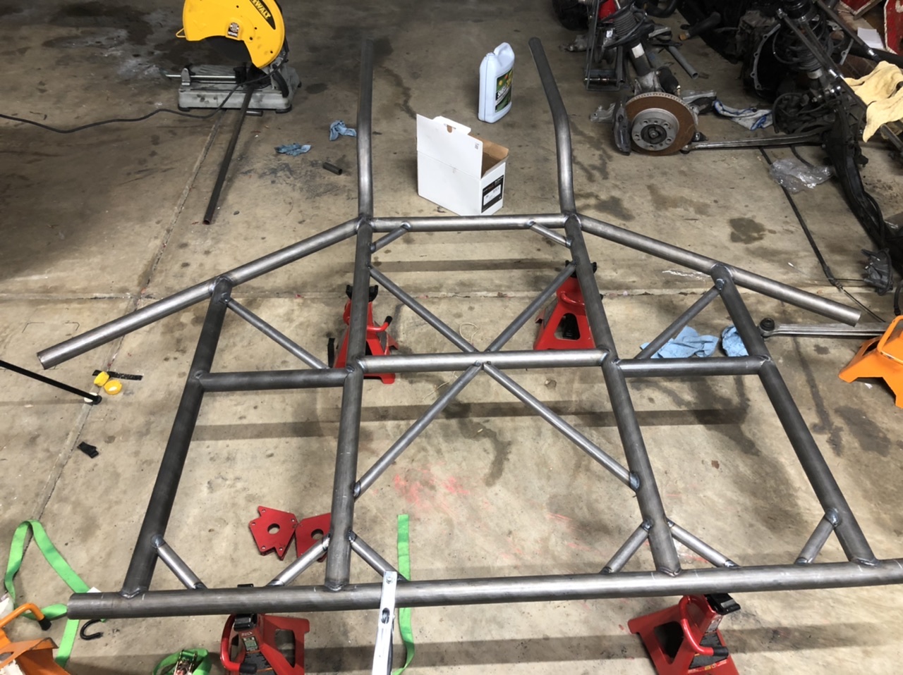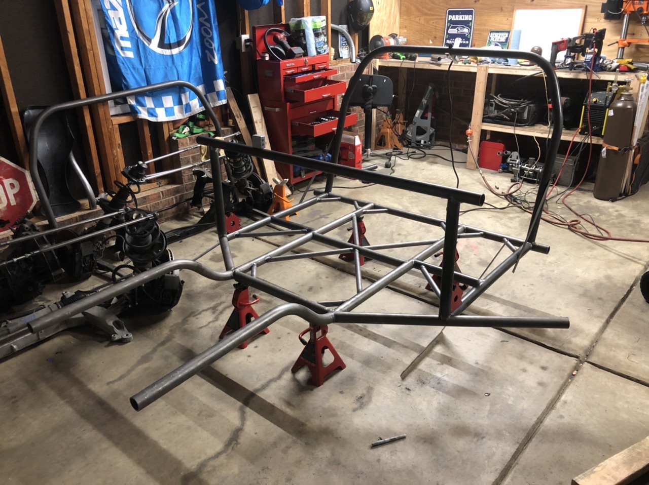Tube frame chassis, all made of DOM tube and when all when the car is fully built it should weigh 1600 ish lbs.