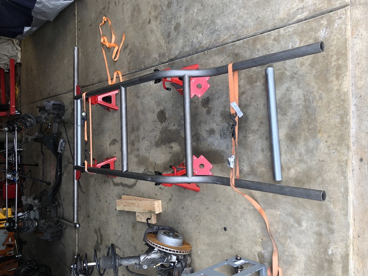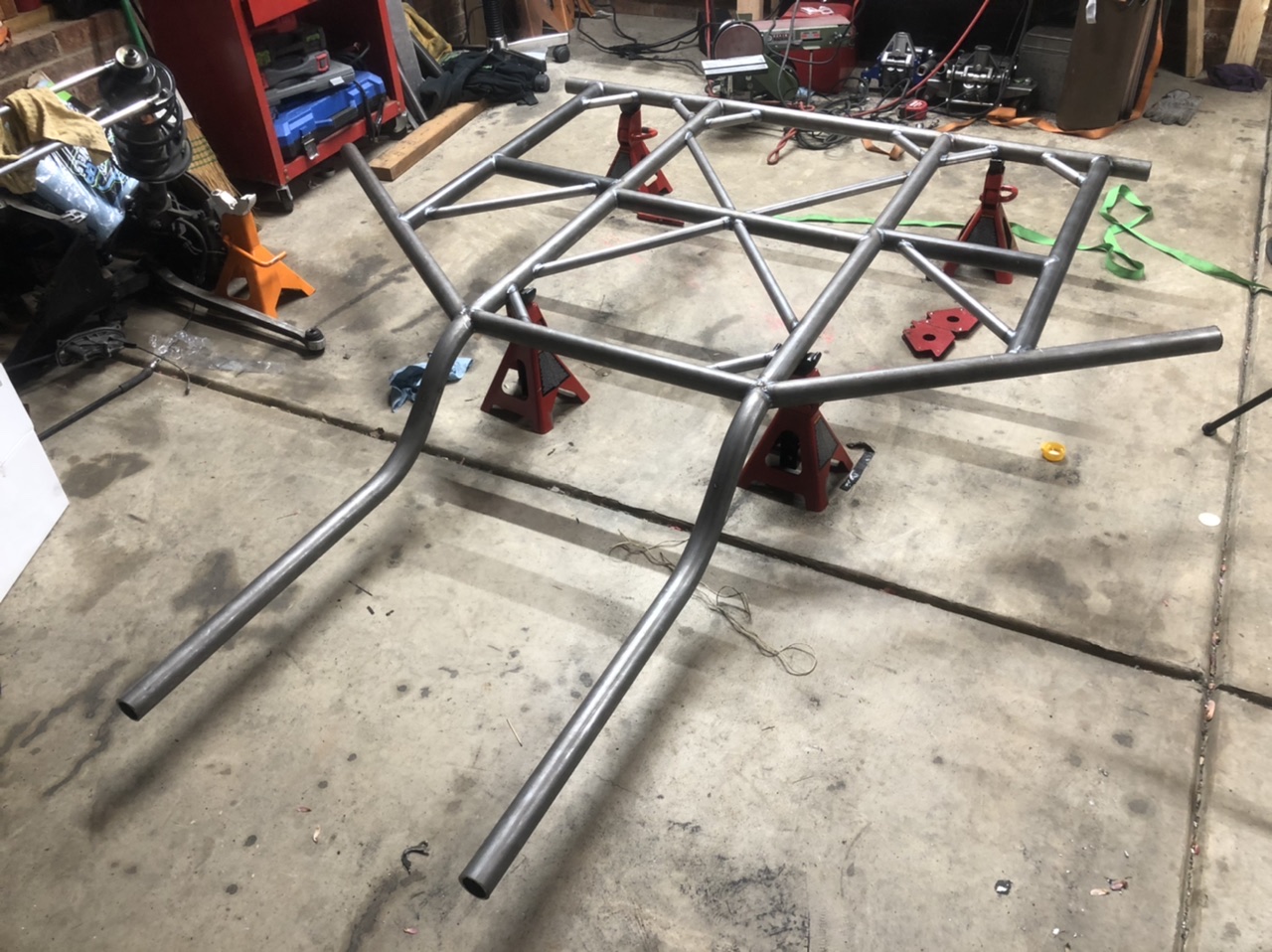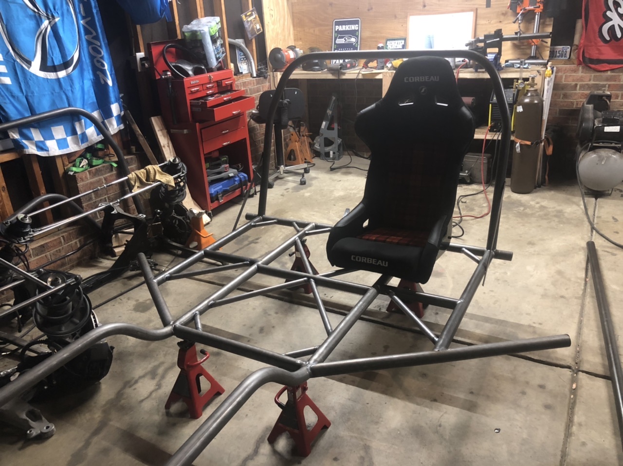 Tube frame chassis, all made of DOM tube and when all when the car is fully built it should weigh 1600 ish lbs.