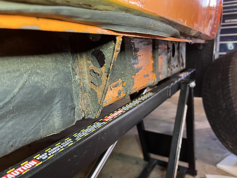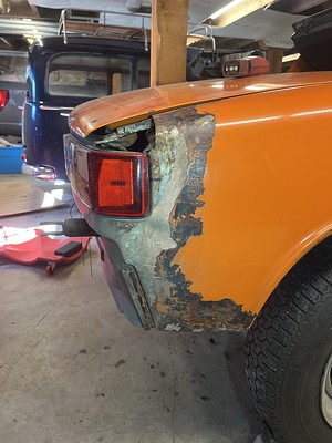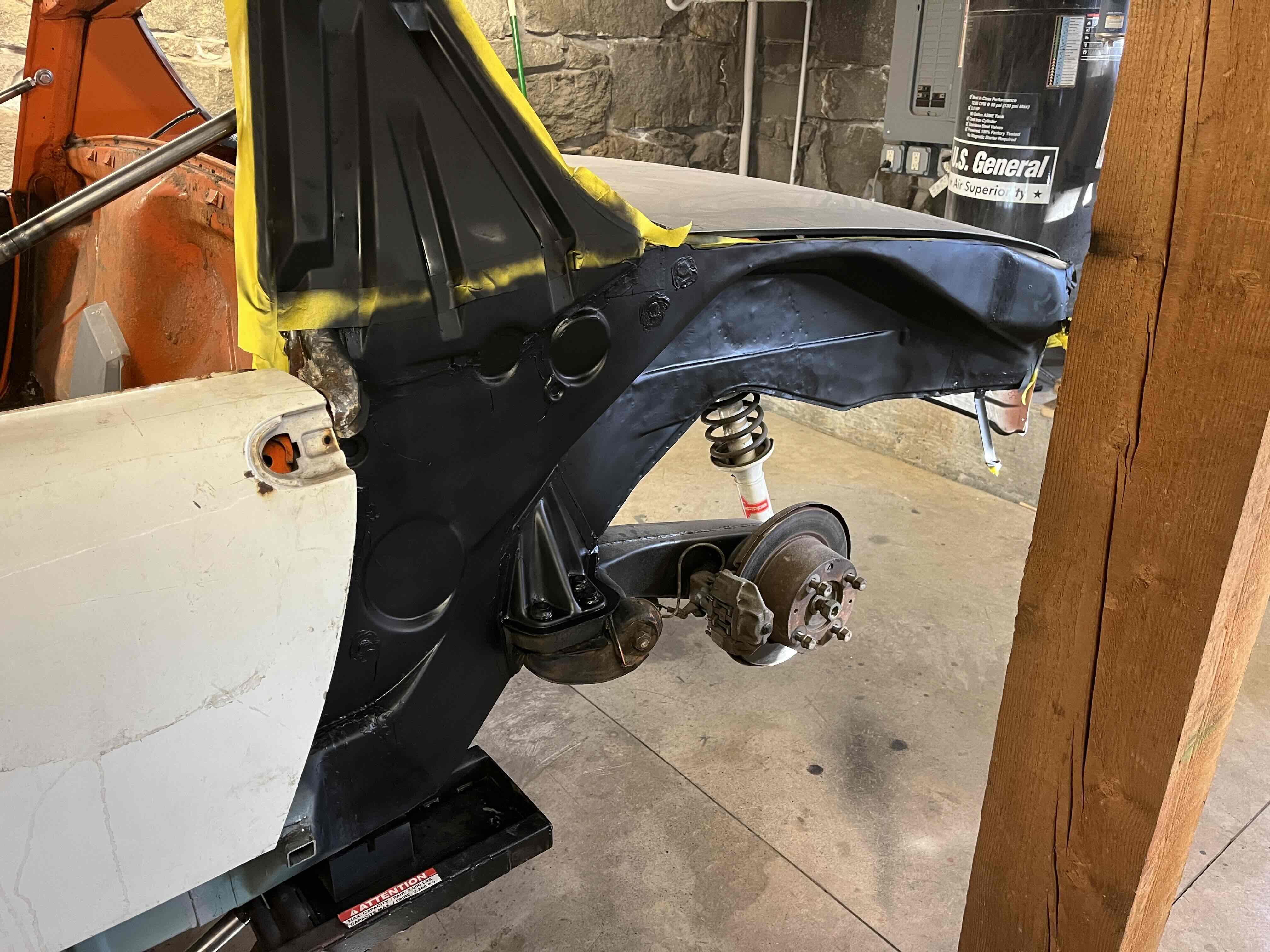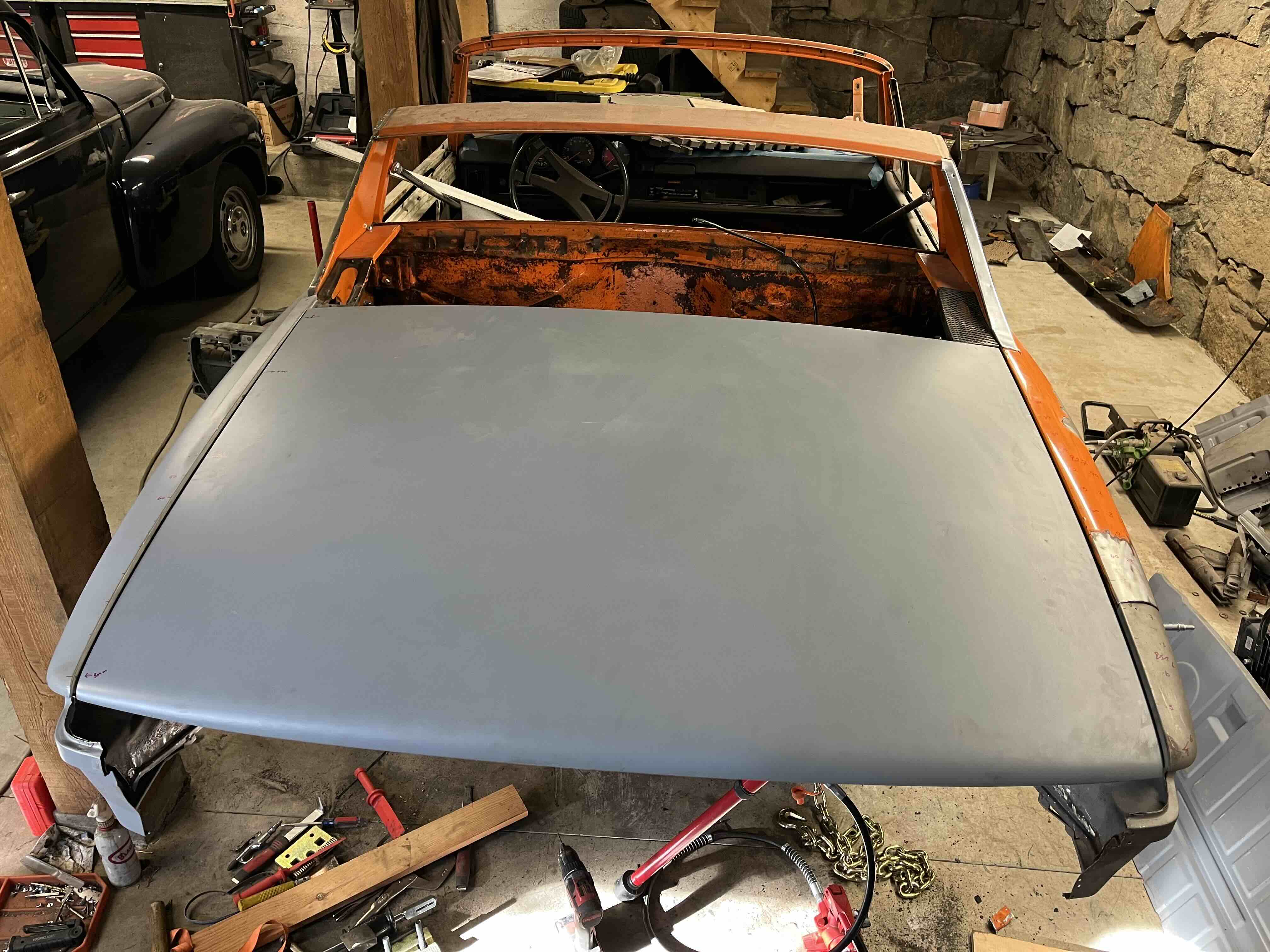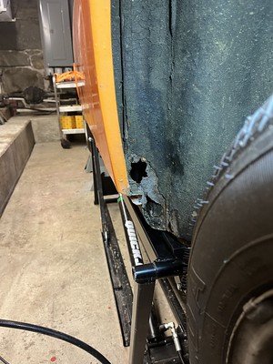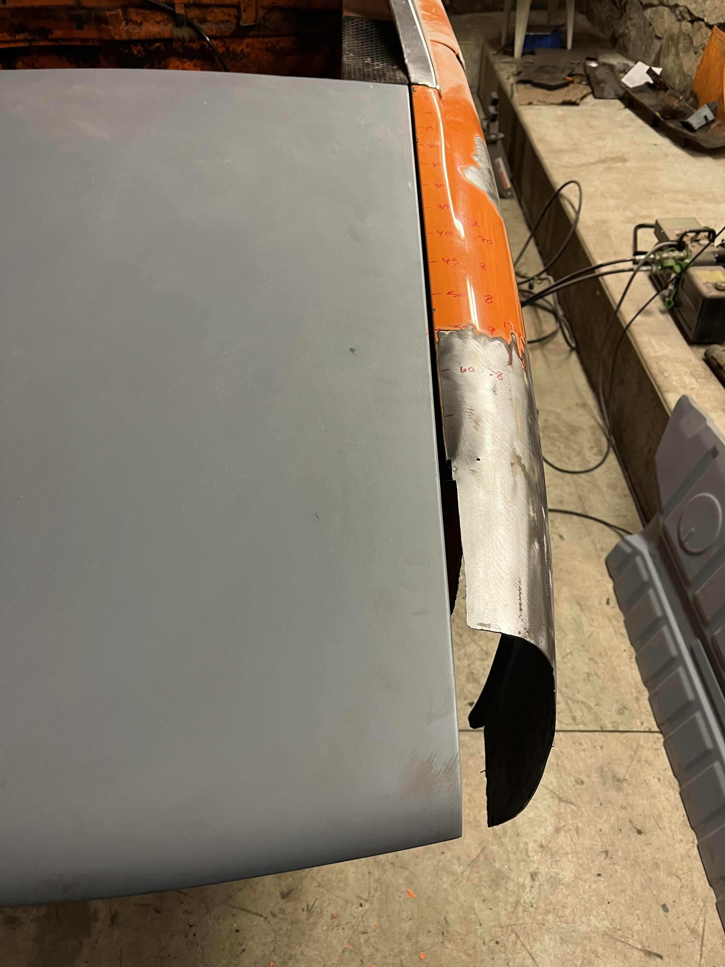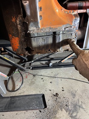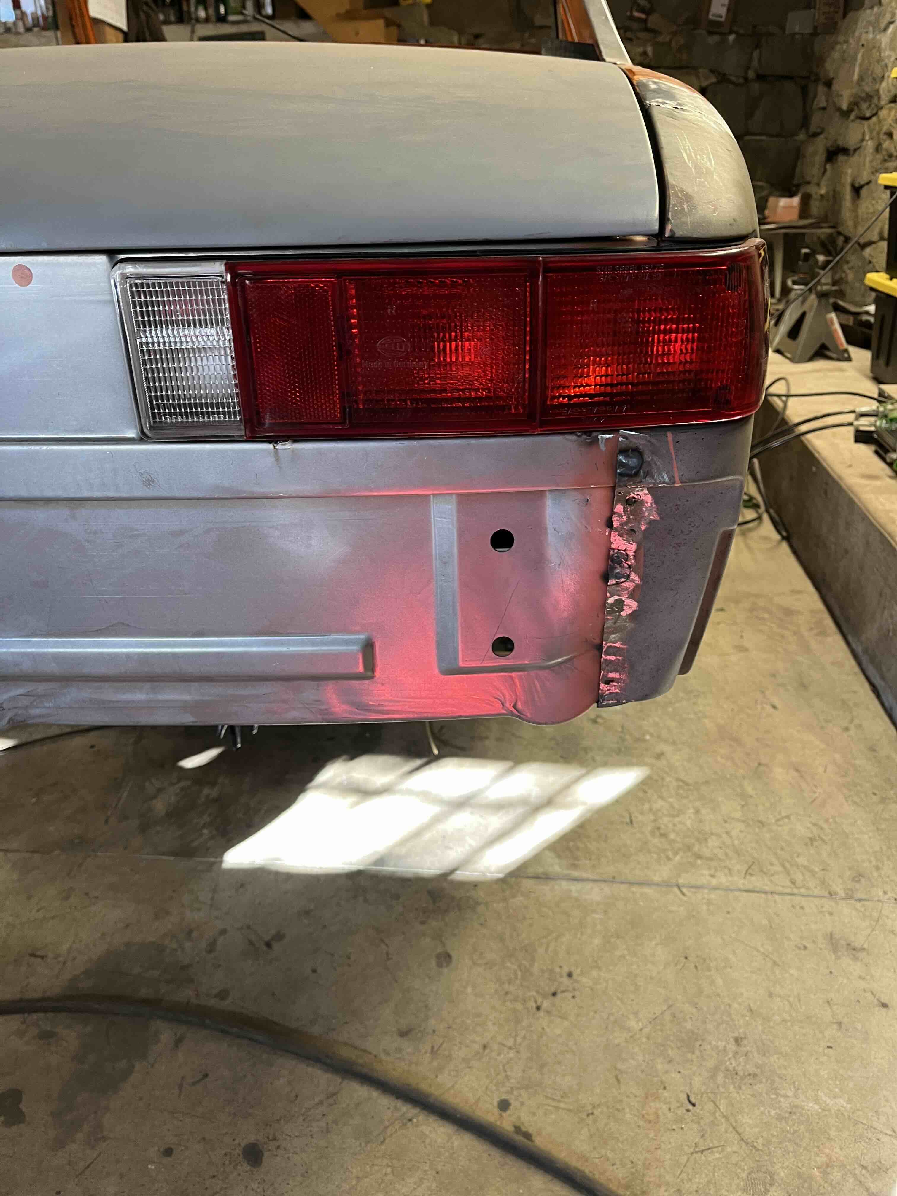 Photos below tell the story but the worst of the rust appears to be in the aft section of the LH outer longitudinal. I haven’t pulled the battery and ECU out yet, but from what I can see underneath the car, inside the engine bay, and between the quarter panel and the engine compartment tin the hell hole appears solid (but I’m prepared to find surprises). The rear of the car seems worst off with rot from the foam above the tail lights partially cut out and partially corrected (I’ll be cutting that all back out and starting the job fresh). It was also hit from behind on the LH side and although I haven’t measured everything out yet, from what I can see underneath things don’t seem to be out of whack (maybe wishful thinking as the panel gaps for the rear trunk are uneven). The trunk lid itself somehow didn’t rust out along the rear edge, but it’s suffered a lot of abuse in the form of a now missing luggage rack and a black fiberglass spoiler that had been attached with wood screws. The front of the car doesn’t show any signs of impact damage but the trunk lid sits high when latched on the LH side.