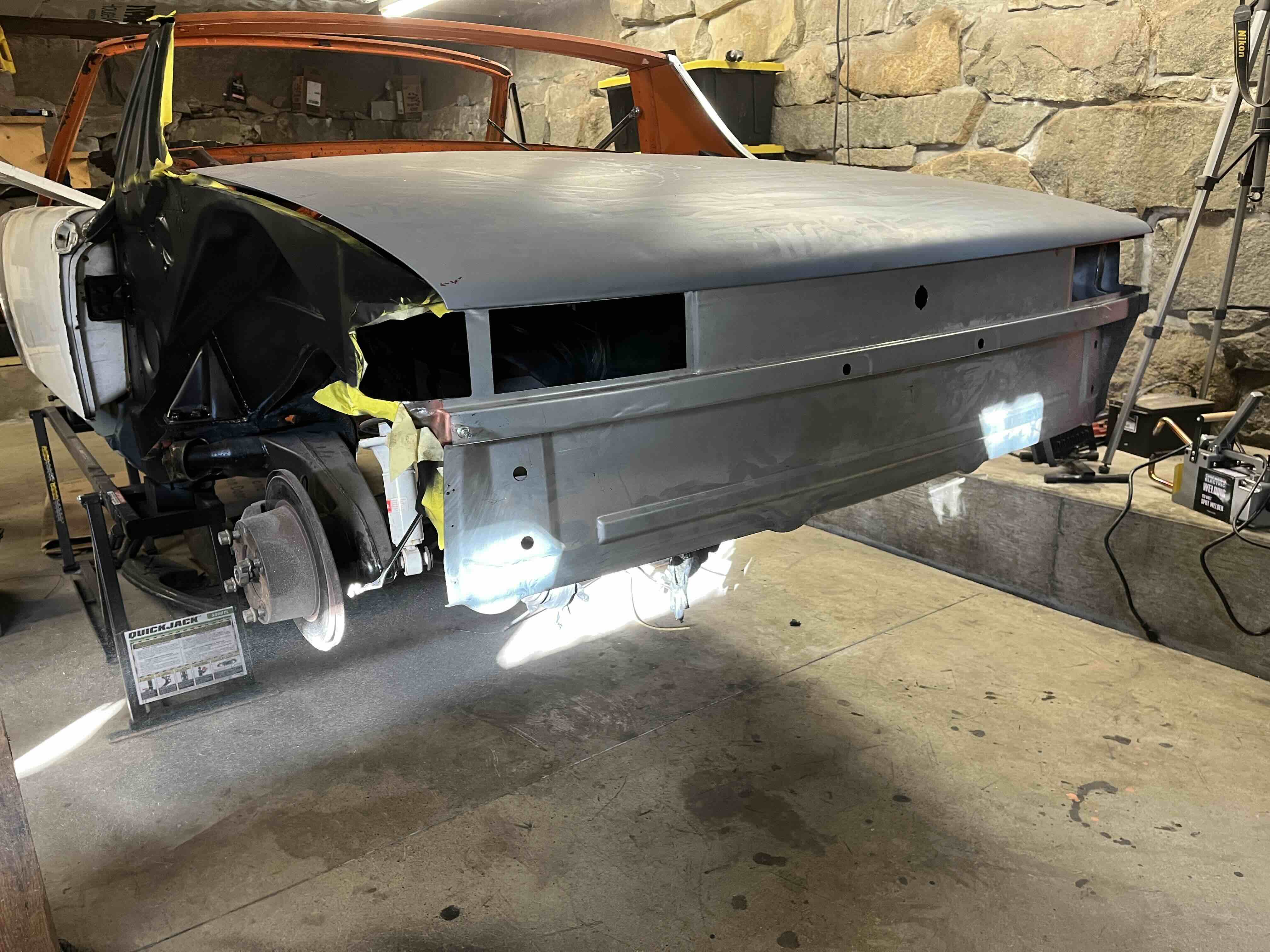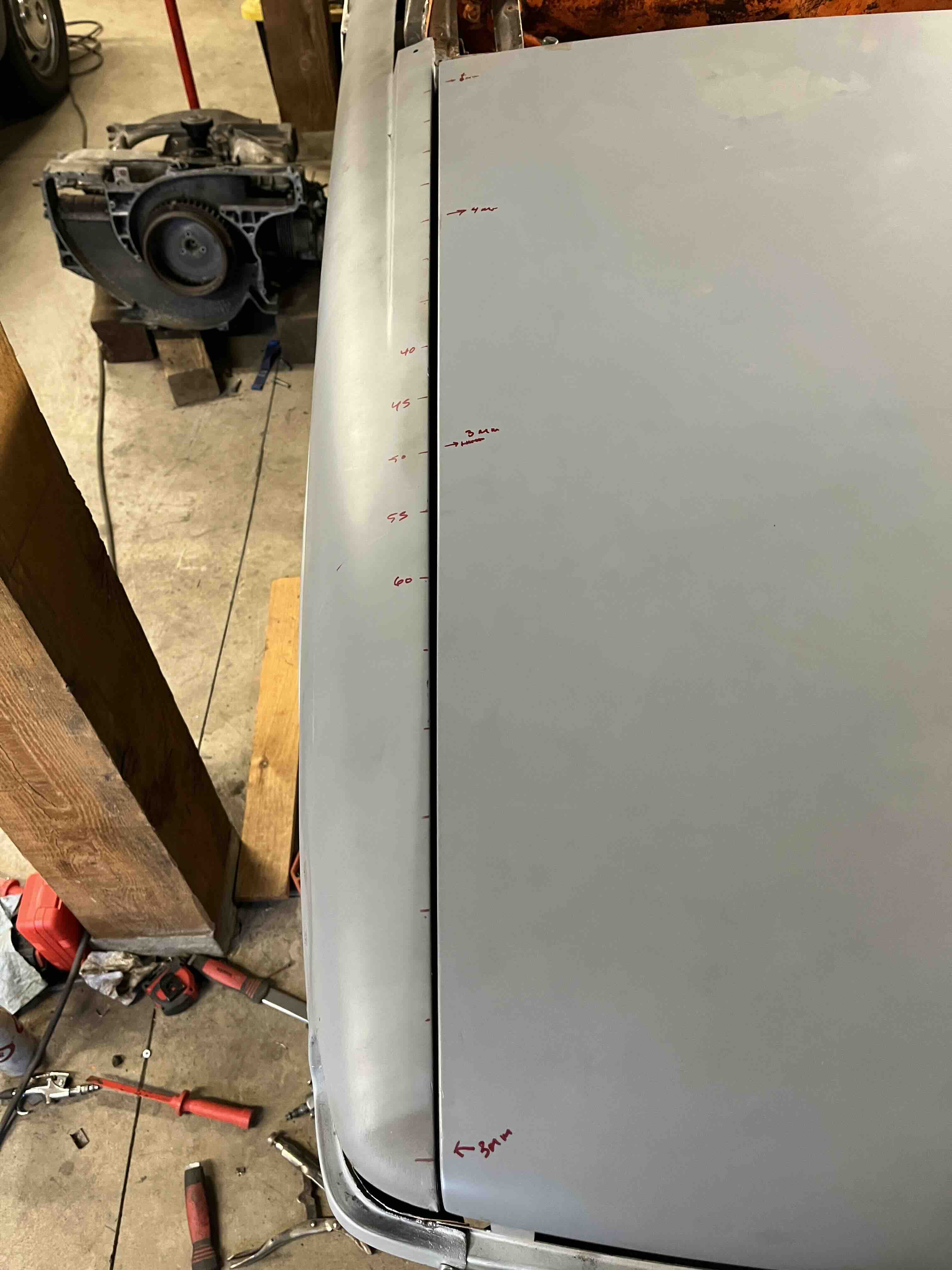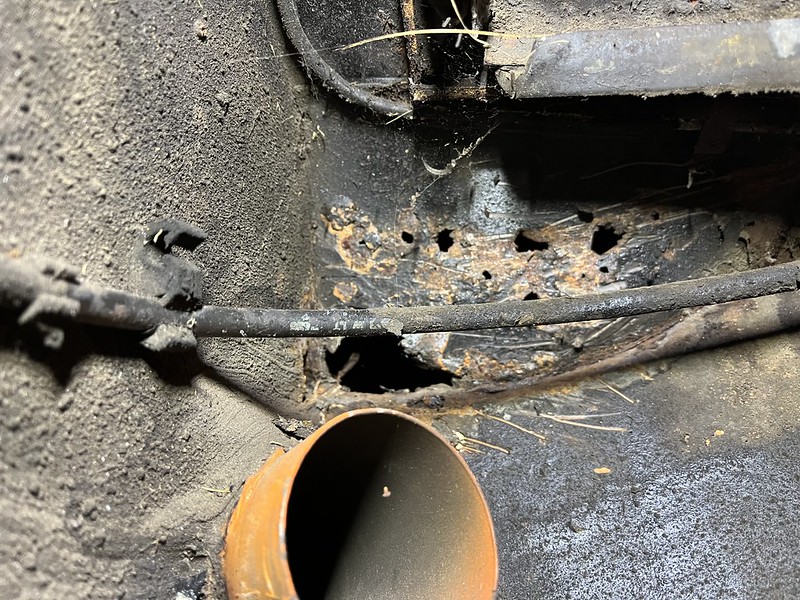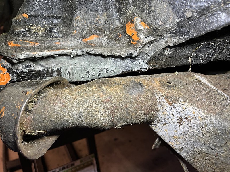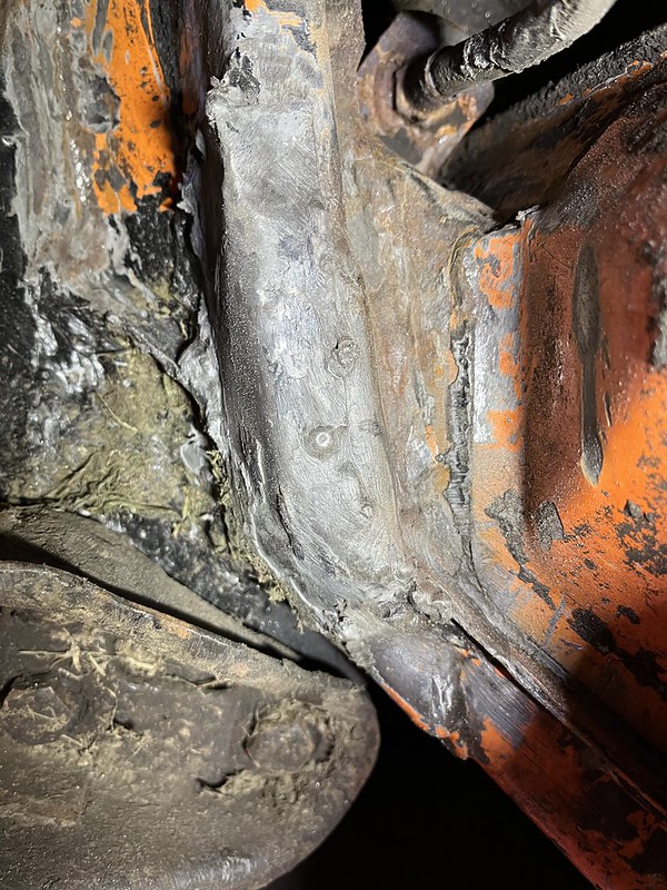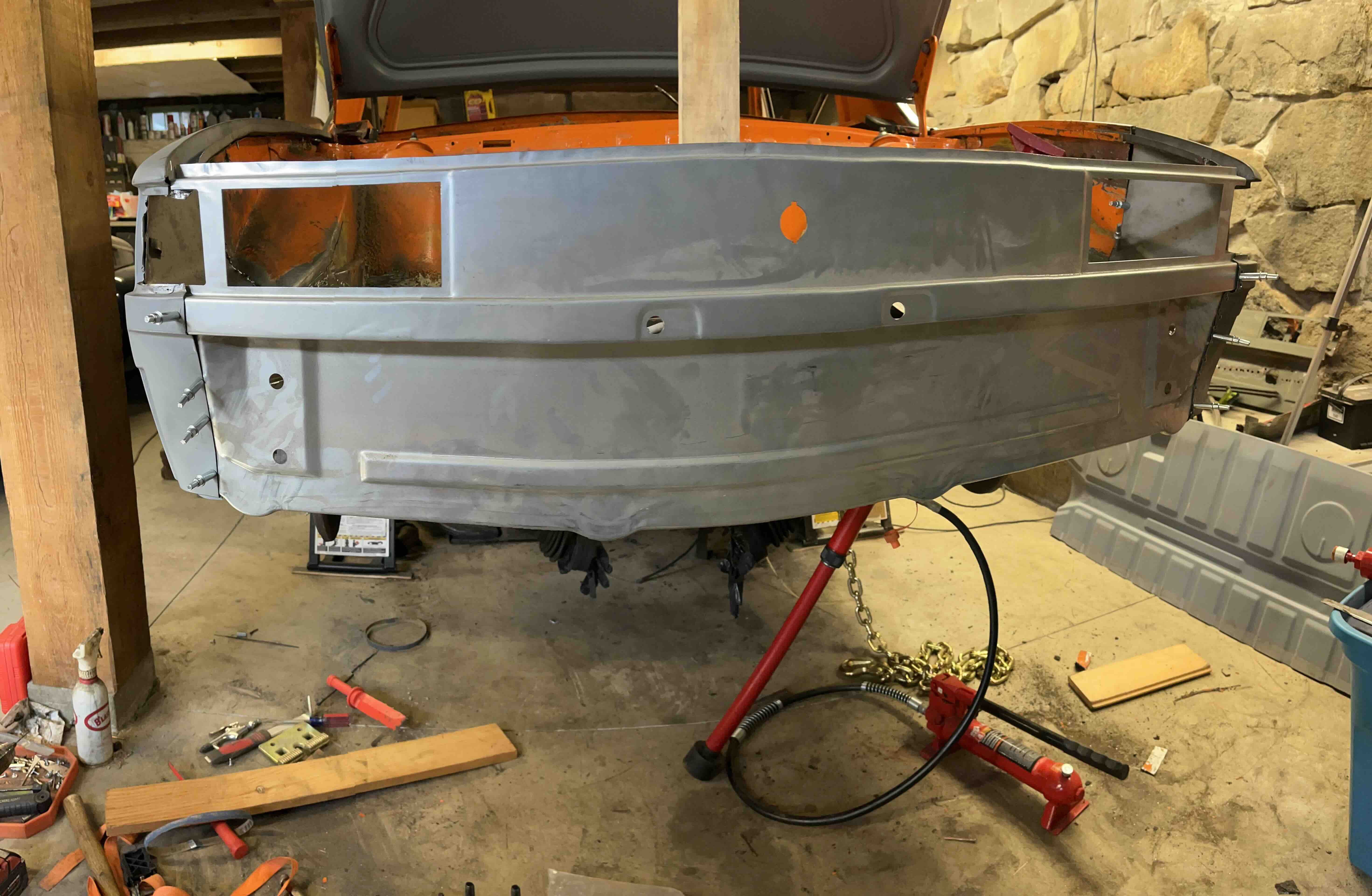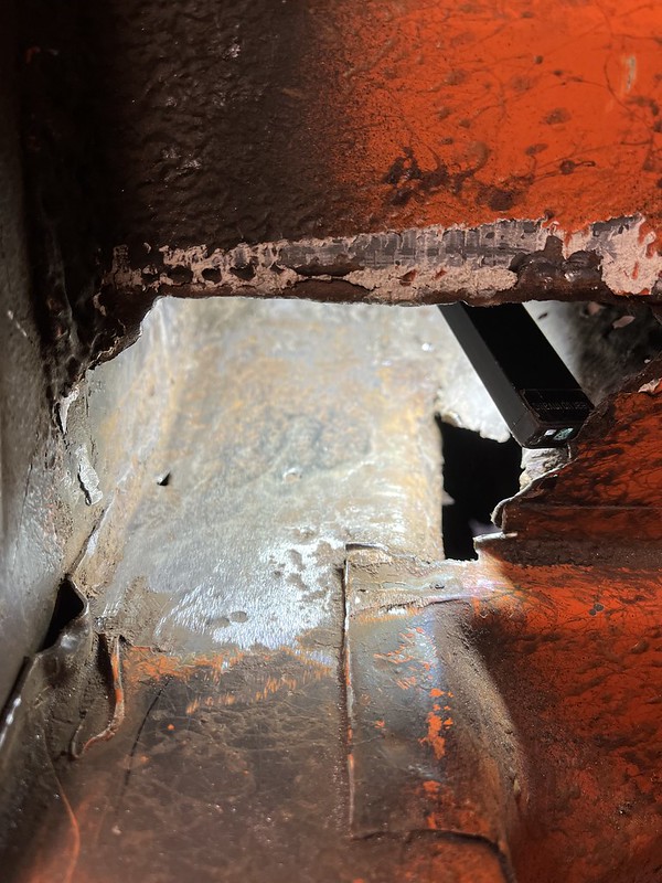Photos below tell the story but the worst of the rust appears to be in the aft section of the LH outer longitudinal. I haven’t pulled the battery and ECU out yet, but from what I can see underneath the car, inside the engine bay, and between the quarter panel and the engine compartment tin the hell hole appears solid (but I’m prepared to find surprises). The rear of the car seems worst off with rot from the foam above the tail lights partially cut out and partially corrected (I’ll be cutting that all back out and starting the job fresh). It was also hit from behind on the LH side and although I haven’t measured everything out yet, from what I can see underneath things don’t seem to be out of whack (maybe wishful thinking as the panel gaps for the rear trunk are uneven). The trunk lid itself somehow didn’t rust out along the rear edge, but it’s suffered a lot of abuse in the form of a now missing luggage rack and a black fiberglass spoiler that had been attached with wood screws. The front of the car doesn’t show any signs of impact damage but the trunk lid sits high when latched on the LH side.