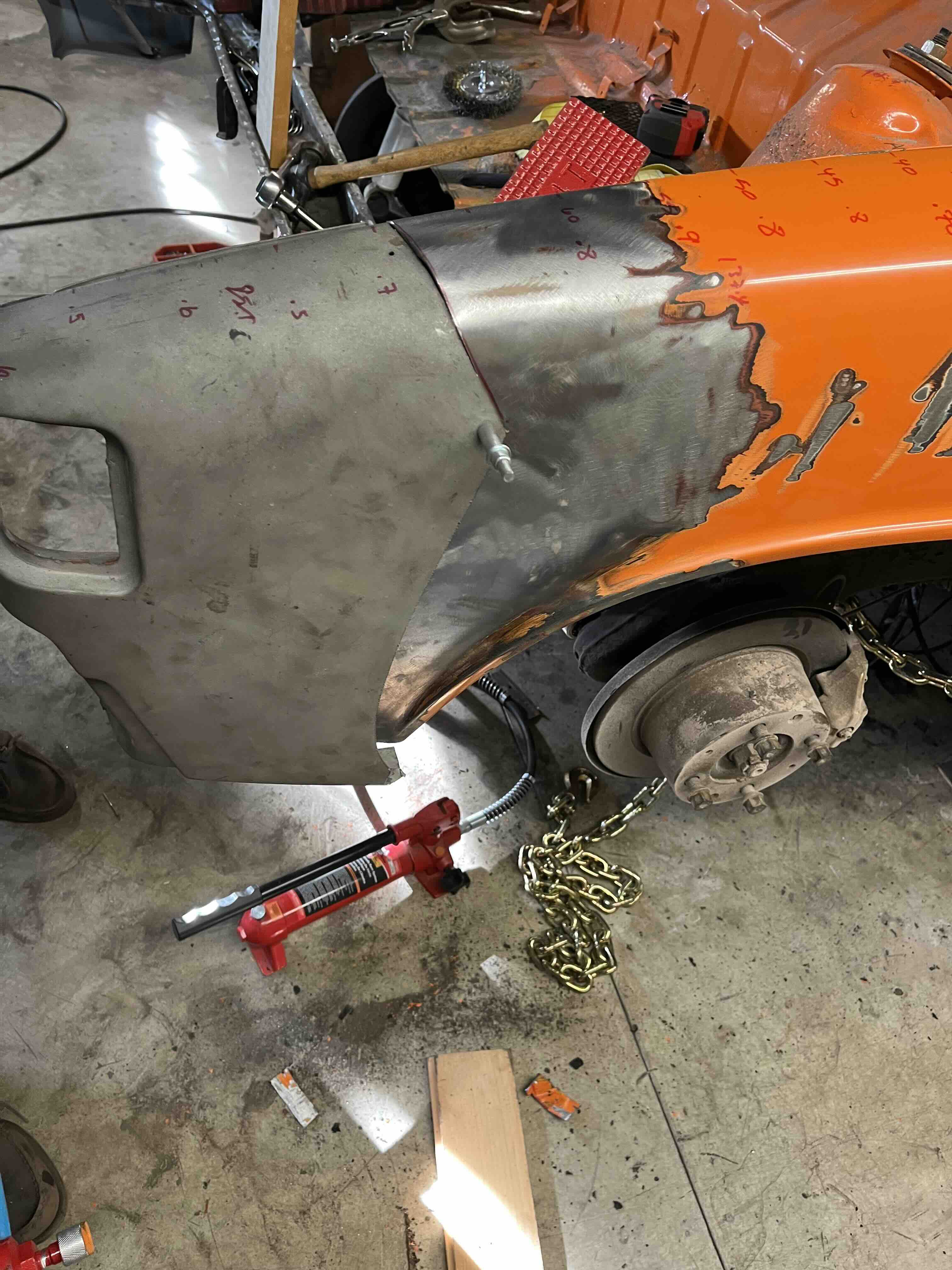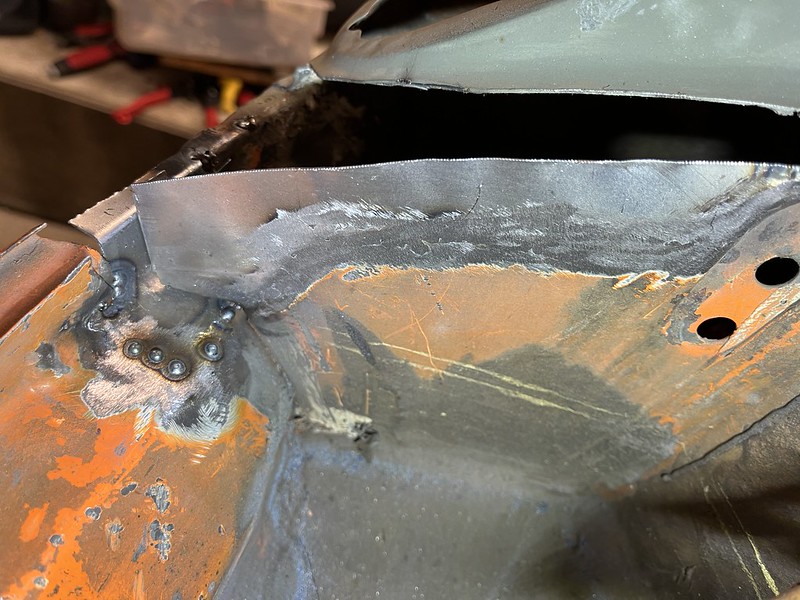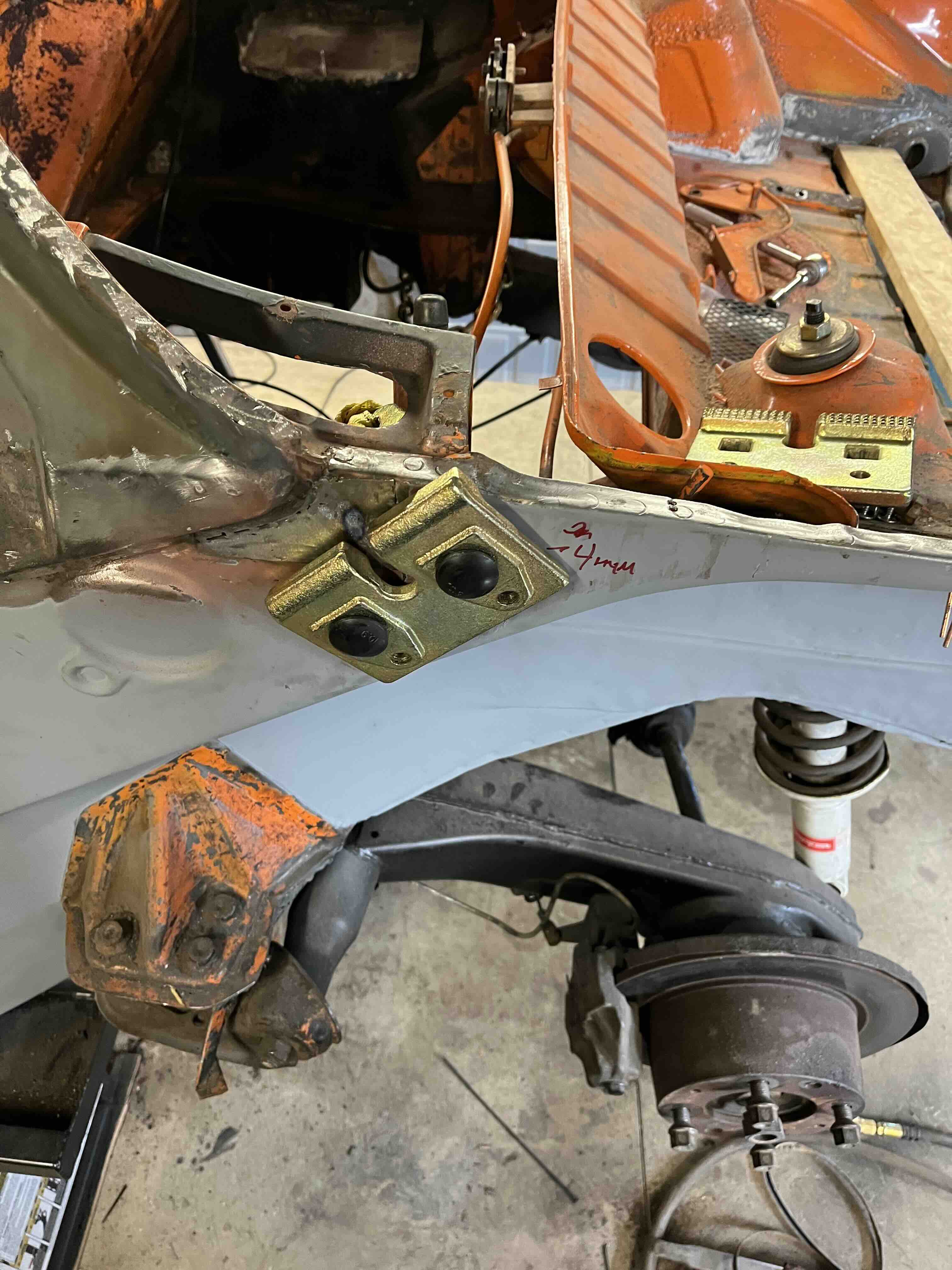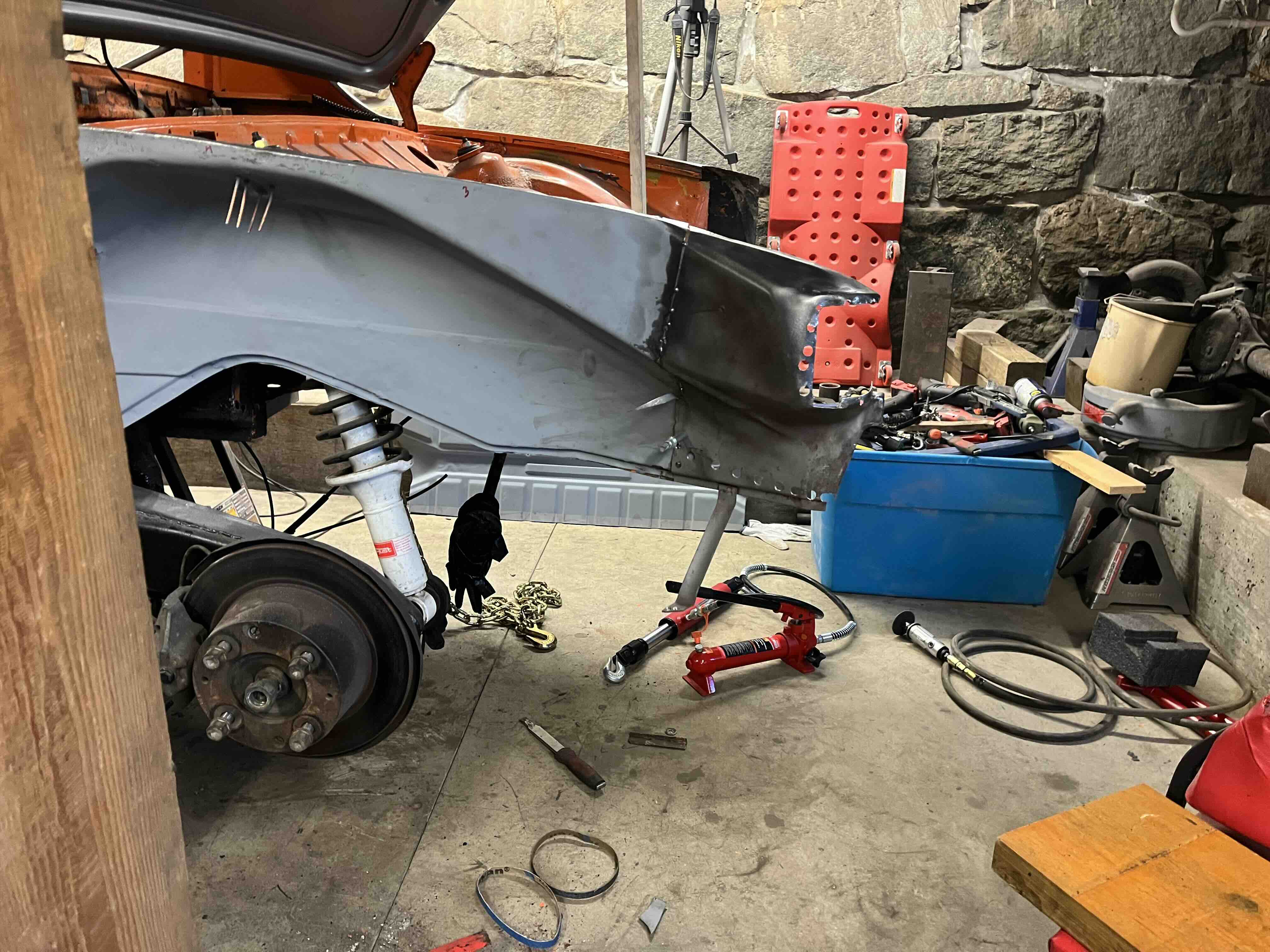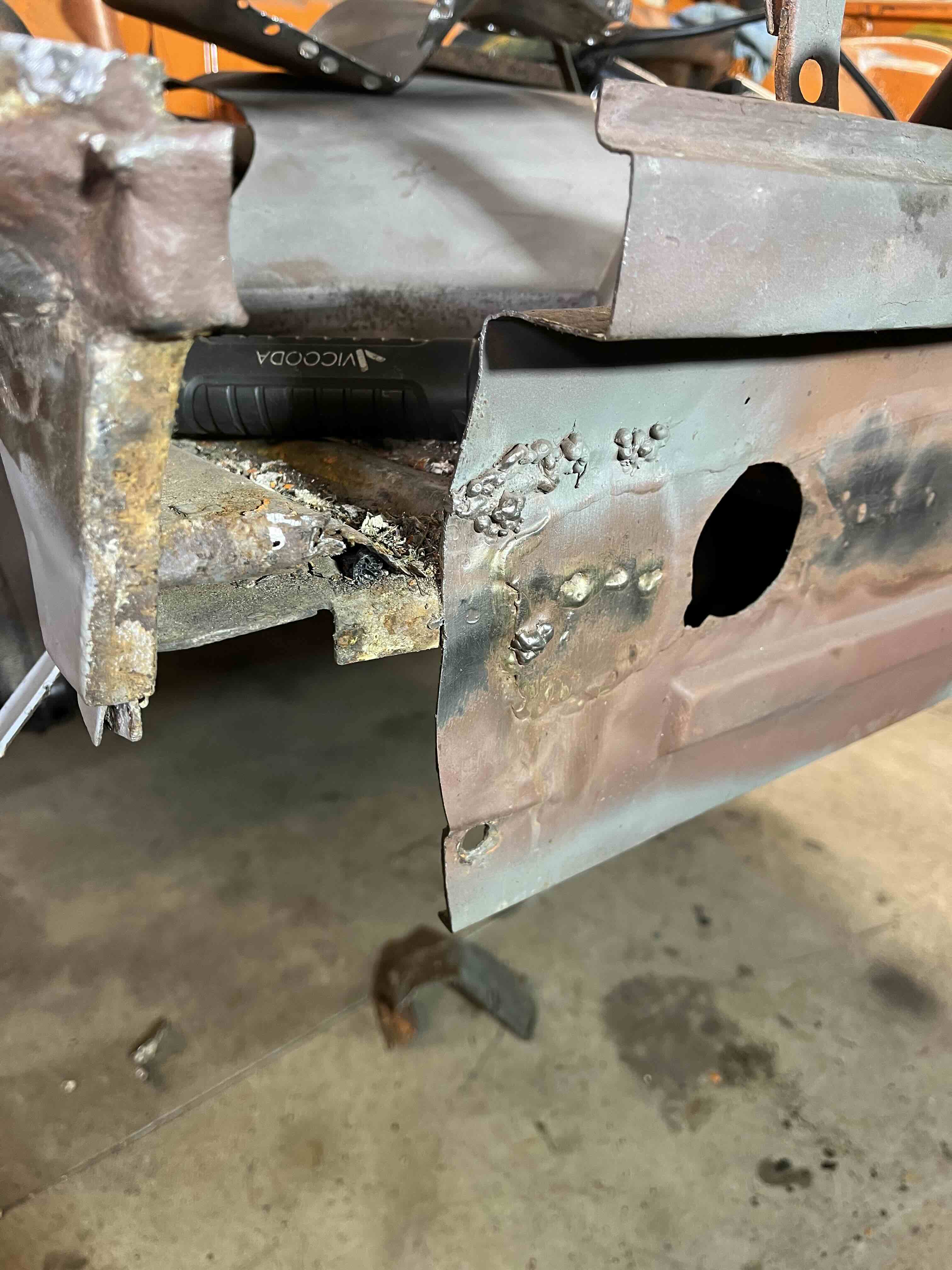 Photos below tell the story but the worst of the rust appears to be in the aft section of the LH outer longitudinal. I haven’t pulled the battery and ECU out yet, but from what I can see underneath the car, inside the engine bay, and between the quarter panel and the engine compartment tin the hell hole appears solid (but I’m prepared to find surprises). The rear of the car seems worst off with rot from the foam above the tail lights partially cut out and partially corrected (I’ll be cutting that all back out and starting the job fresh). It was also hit from behind on the LH side and although I haven’t measured everything out yet, from what I can see underneath things don’t seem to be out of whack (maybe wishful thinking as the panel gaps for the rear trunk are uneven). The trunk lid itself somehow didn’t rust out along the rear edge, but it’s suffered a lot of abuse in the form of a now missing luggage rack and a black fiberglass spoiler that had been attached with wood screws. The front of the car doesn’t show any signs of impact damage but the trunk lid sits high when latched on the LH side.