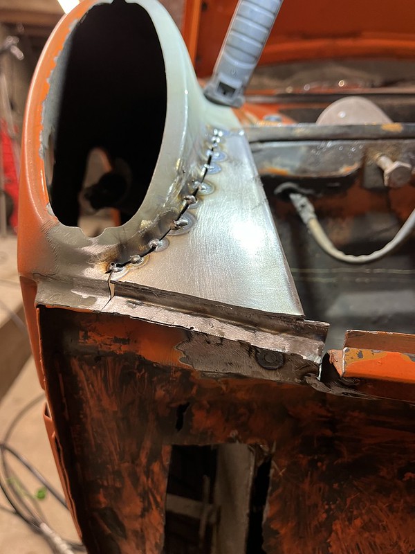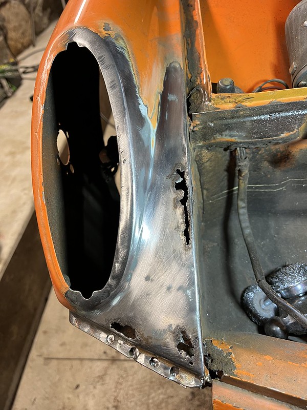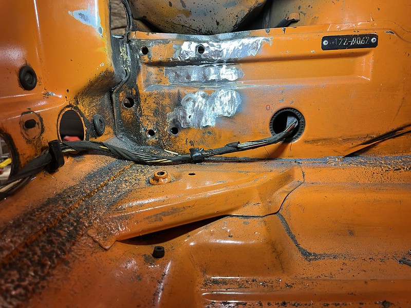 I found it on Craiglist in Maine where it was in the hands of a VW bus/bug enthusiast who was the third owner and had decided to focus his energies on a bus restoration instead. It was last registered an on the road in 2017 when the second owner had it. When I bought it it lot drove and came with an assortment of Restoration Design repair panels, several spare doors from earlier cars, some foglight front bumpers, spare seats, etc.. In a first for me when it comes to project cars the electrics all function properly and appear never to have been monkeyed with. Lights, blinkers, engine heater fan, hazards, everything.